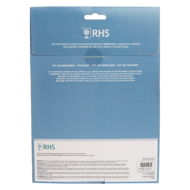 RHS The Royal Horticultural Society Cross Stitch Kit, Cross Stitch Kit, 8", Multicoloured, Includes Bamboo Embroidery hoop, Aida Fabric, Embroidery Threads, Needles, Threader, Instructions