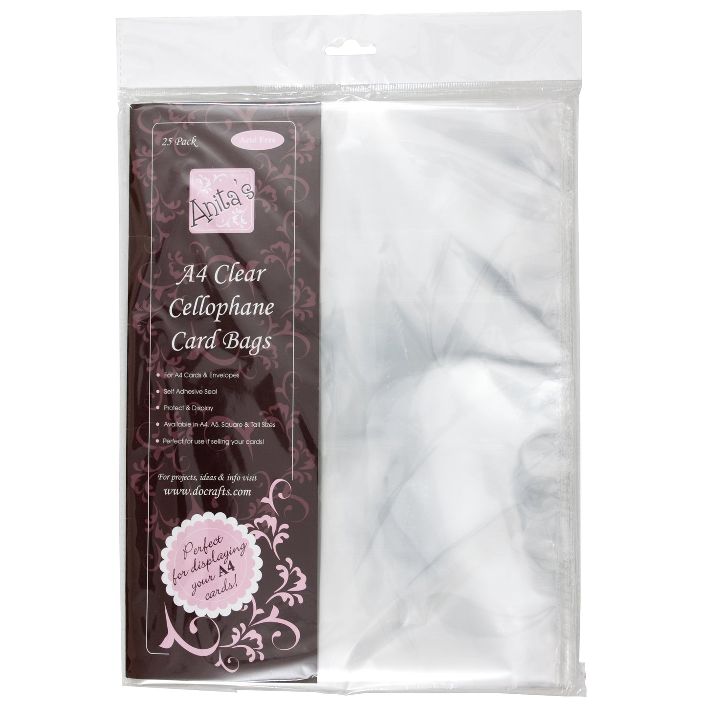 Anita's Card Bag, 240 x 322mm, Clear, Pack Of 25, Plastic Bag, Card Protection Bag, For Home, Art, Craft, Cardmaking