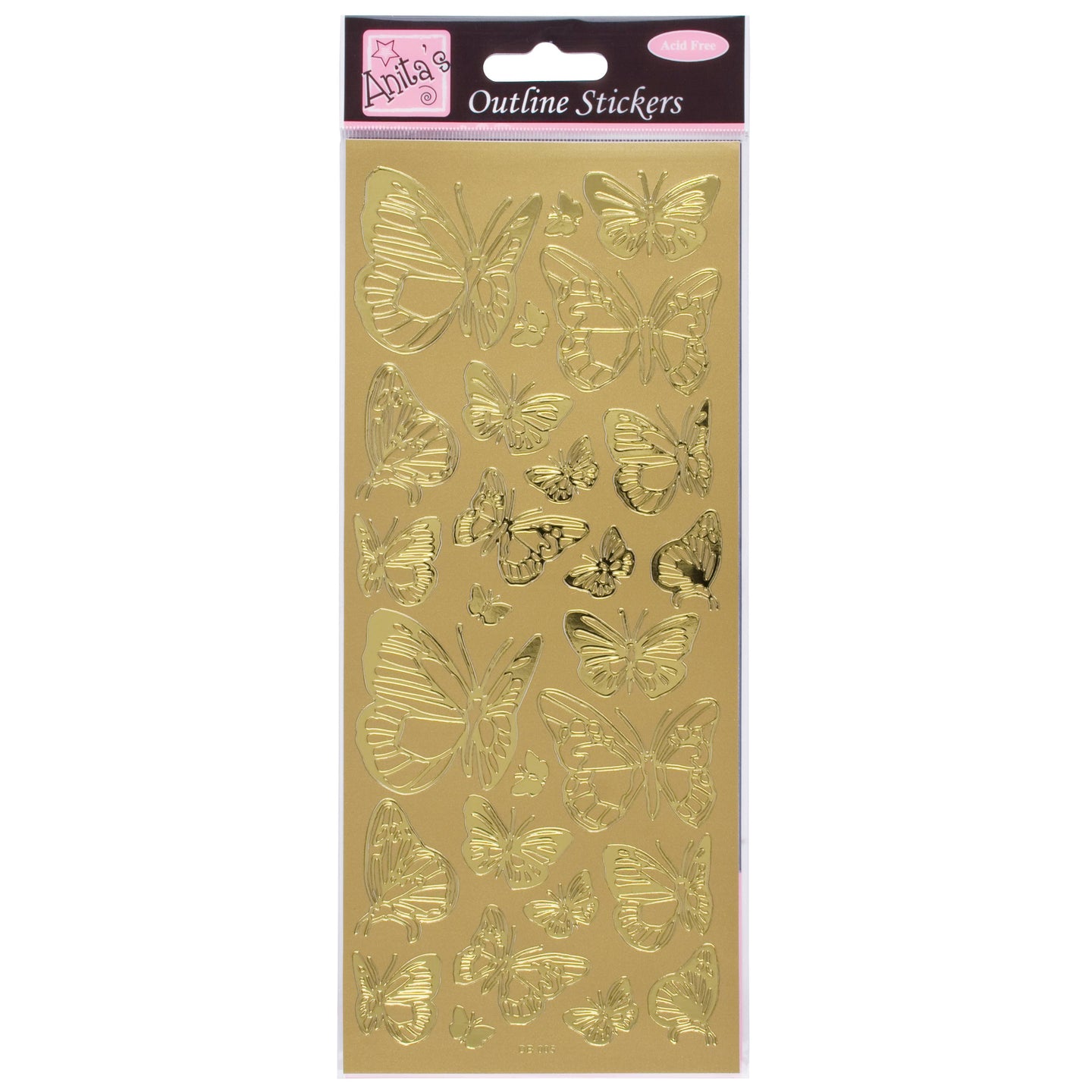 Anita's Outline Stickers, Butterfly, Gold, For Scrapbooking, Card Making, Kids Play, Homework, Art, Craft, Embelish, Decorative, Paper, Card, Glass, Metal, Plastic, Foam