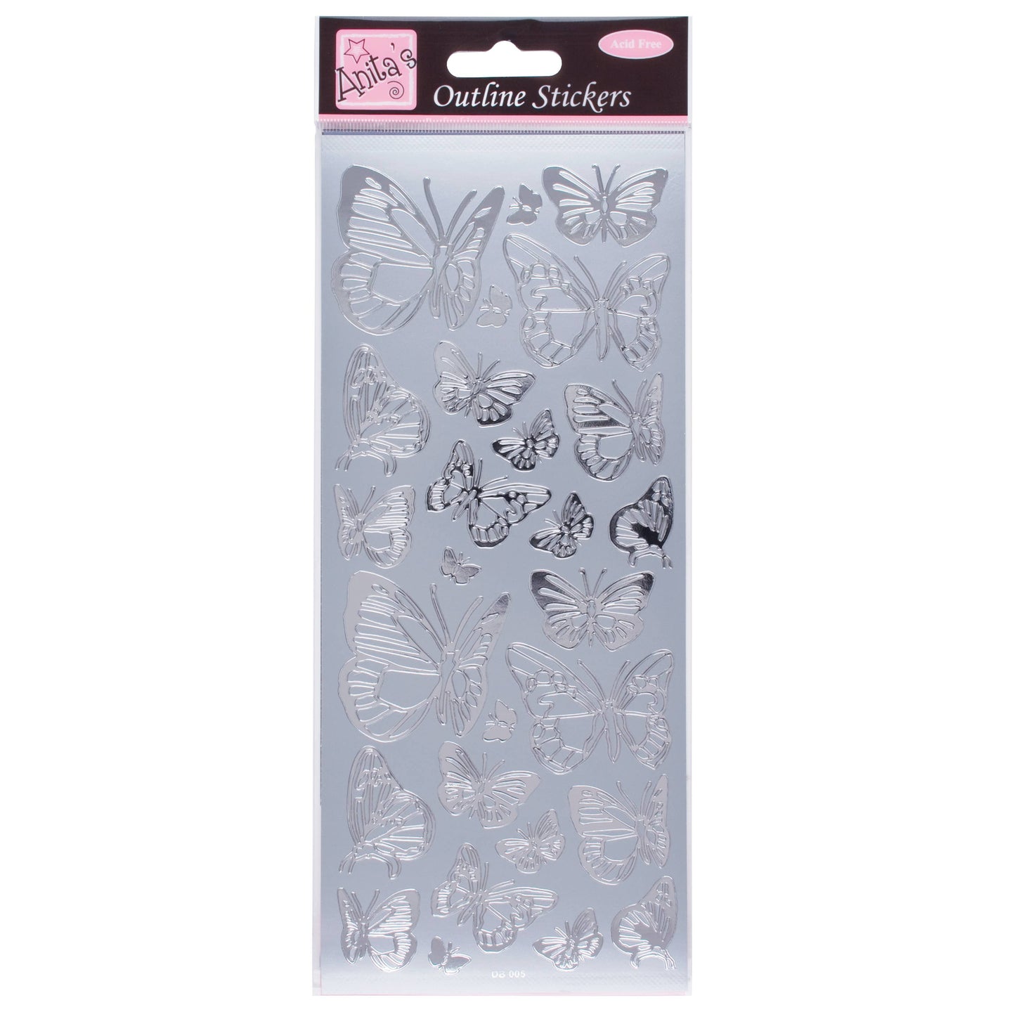 Anita's Outline Stickers, Butterfly, Silver, For Scrapbooking, Card Making, Kids Play, Homework, Art, Craft, Embelish, Decorative, Paper, Card, Glass, Metal, Plastic, Foam