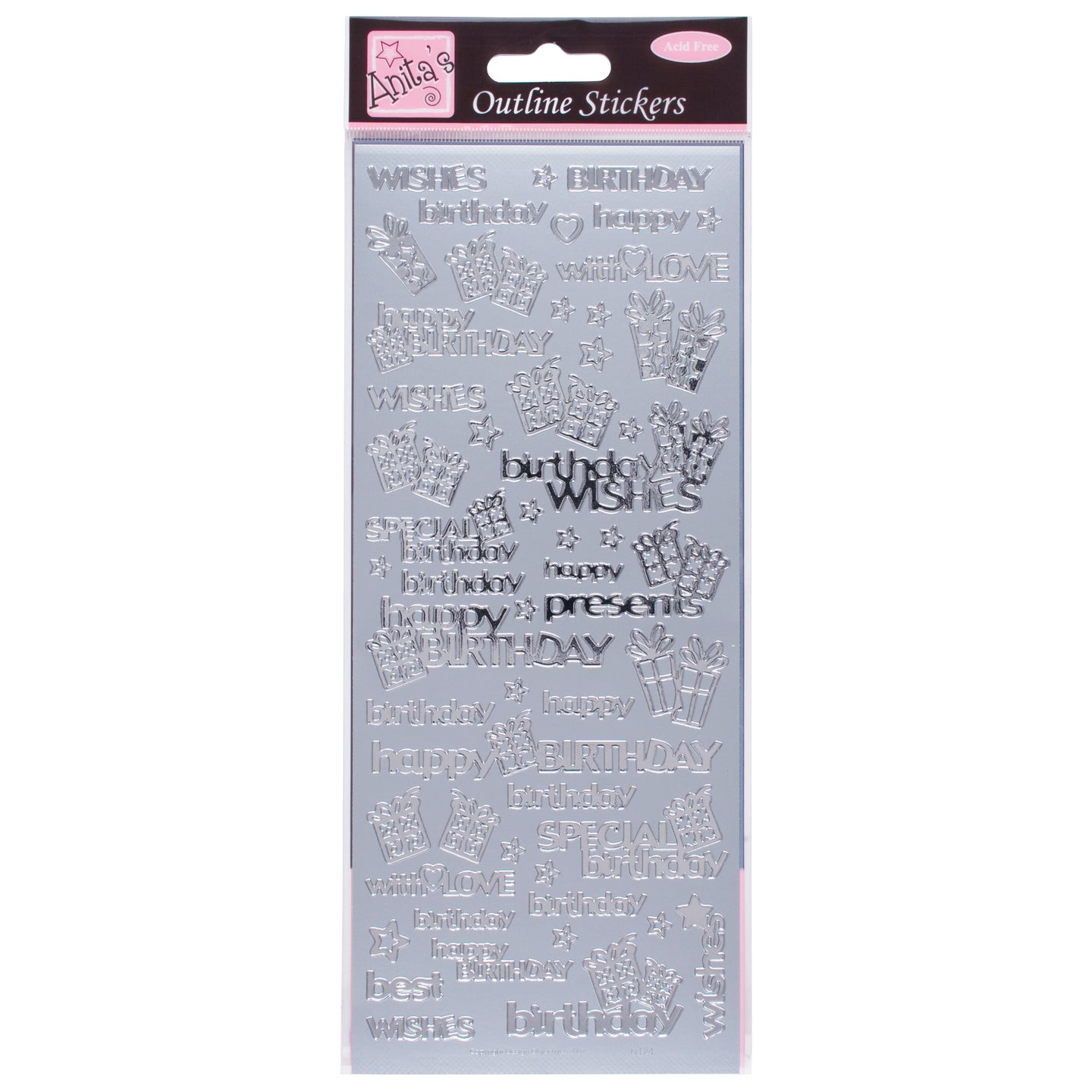 Anita's Outline Stickers, Special Birthday Wishes, Silver, For Scrapbooking, Card Making, Kids Play, Homework, Art, Craft, Embelish, Decorative, Paper, Card, Glass, Metal, Plastic, Foam