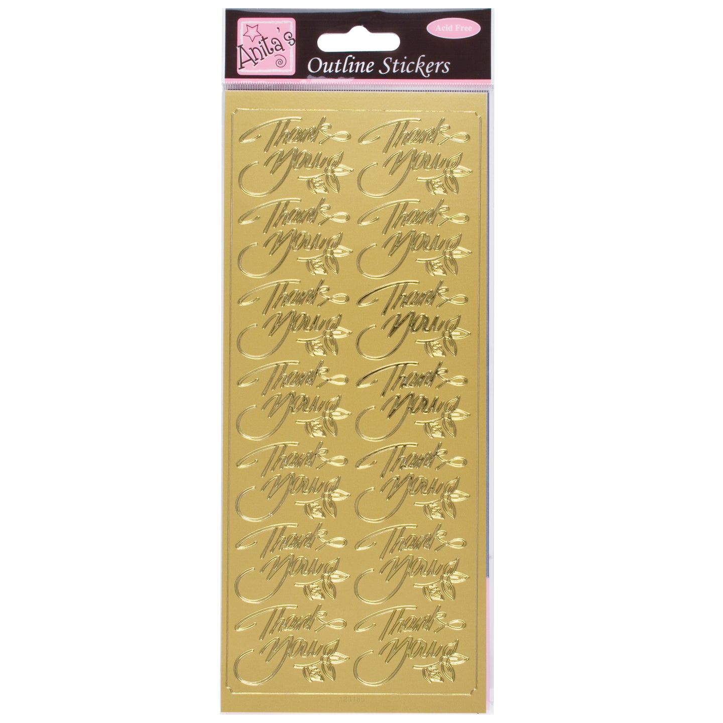 Anita's Outline Stickers, Elegant Thank You, Gold, For Scrapbooking, Card Making, Kids Play, Homework, Art, Craft, Embelish, Decorative, Paper, Card, Glass, Metal, Plastic, Foam