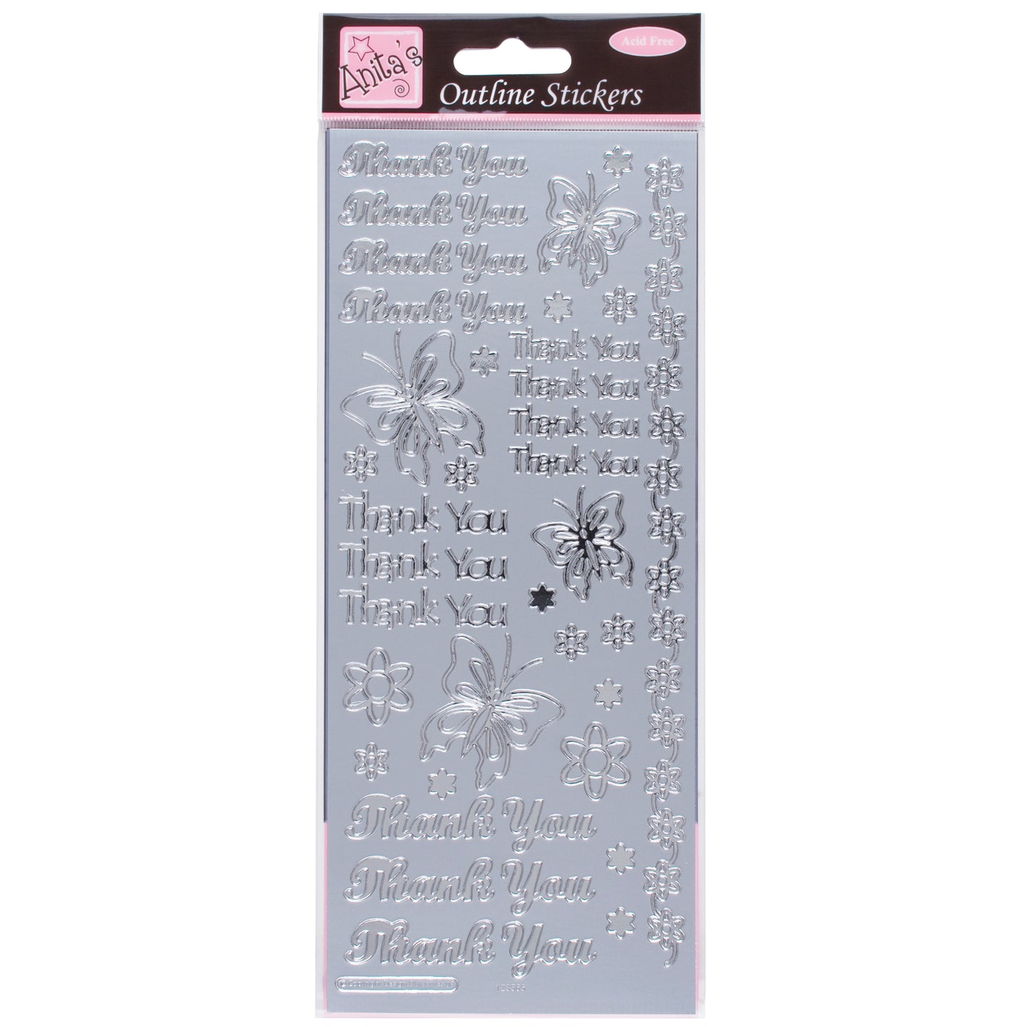 Anita's Outline Stickers, Thank You, Silver, For Scrapbooking, Card Making, Kids Play, Homework, Art, Craft, Embelish, Decorative, Paper, Card, Glass, Metal, Plastic, Foam
