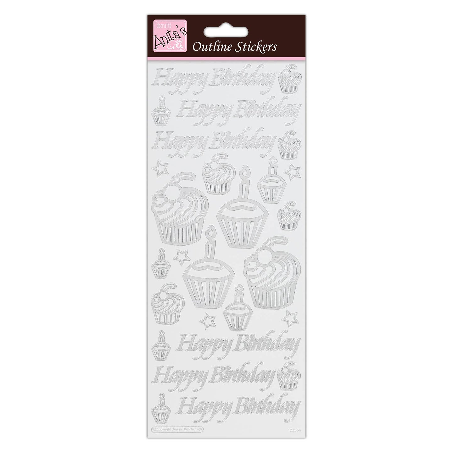 Anita's Outline Stickers, Birthday Cupcake, Silver on White, For Scrapbooking, Card Making, Kids Play, Homework, Art, Craft, Embelish, Decorative, Paper, Card, Glass, Metal, Plastic, Foam