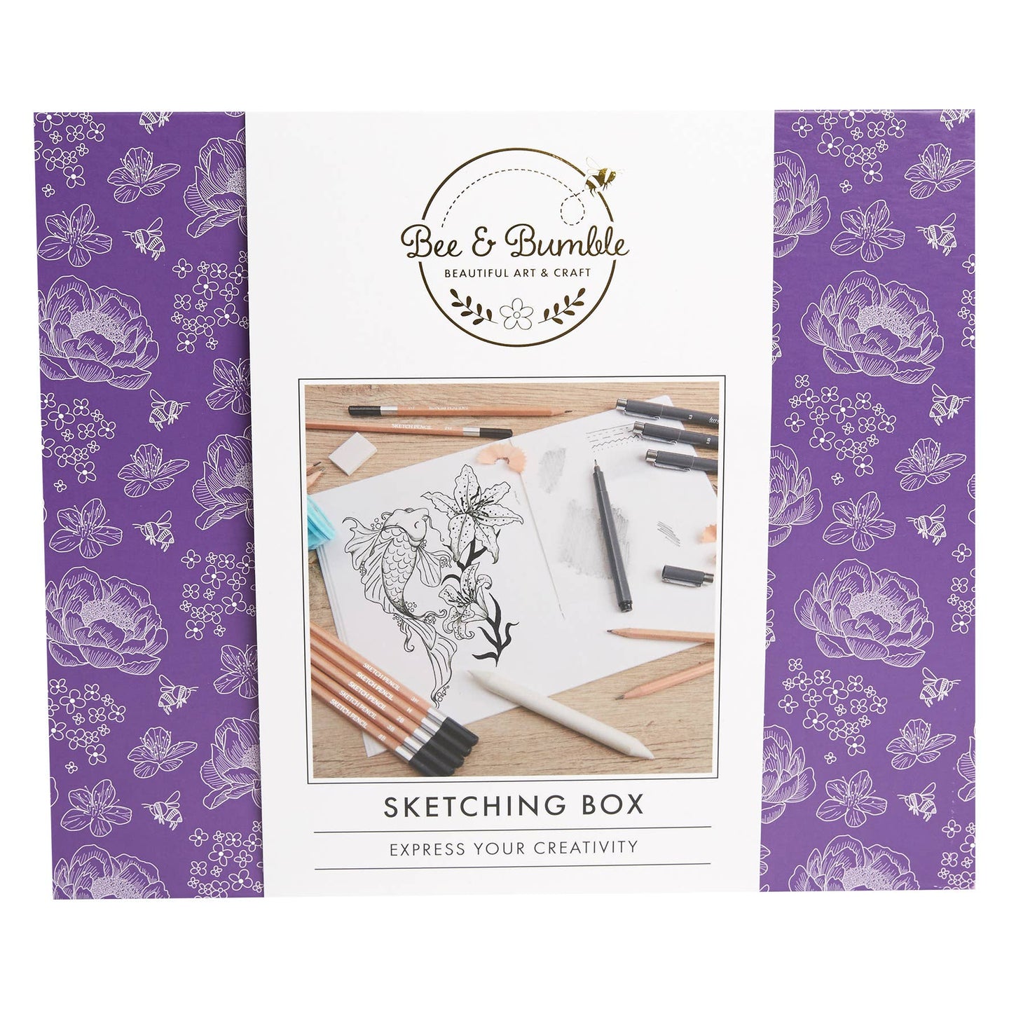 Bee & Bumble Sketching Box Art And Craft Supplies Set, Ideal For Adults And Older Kids, Perfect For Sketching, Doodling, Drawing, Colouring And More With Charcoal, Paint, Pencils, Pens And Graphite