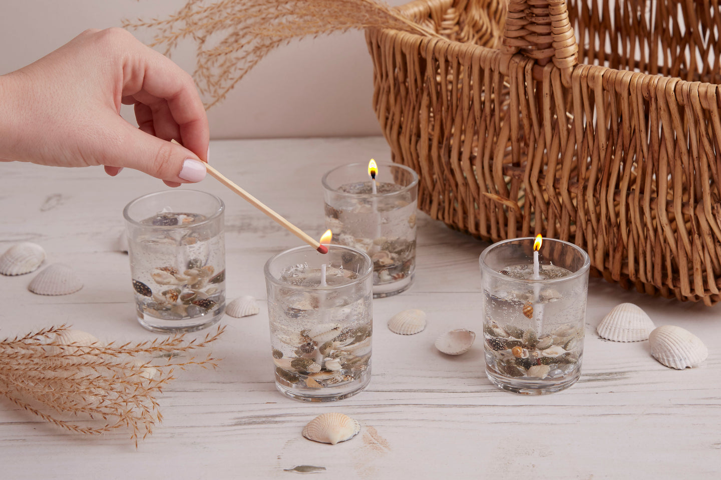 Bee & Bumble Gel Candle Making, Clear, Set Of 4 Glasses & Shells, DIY, Art And Crafts, Wax, Unique Gift
