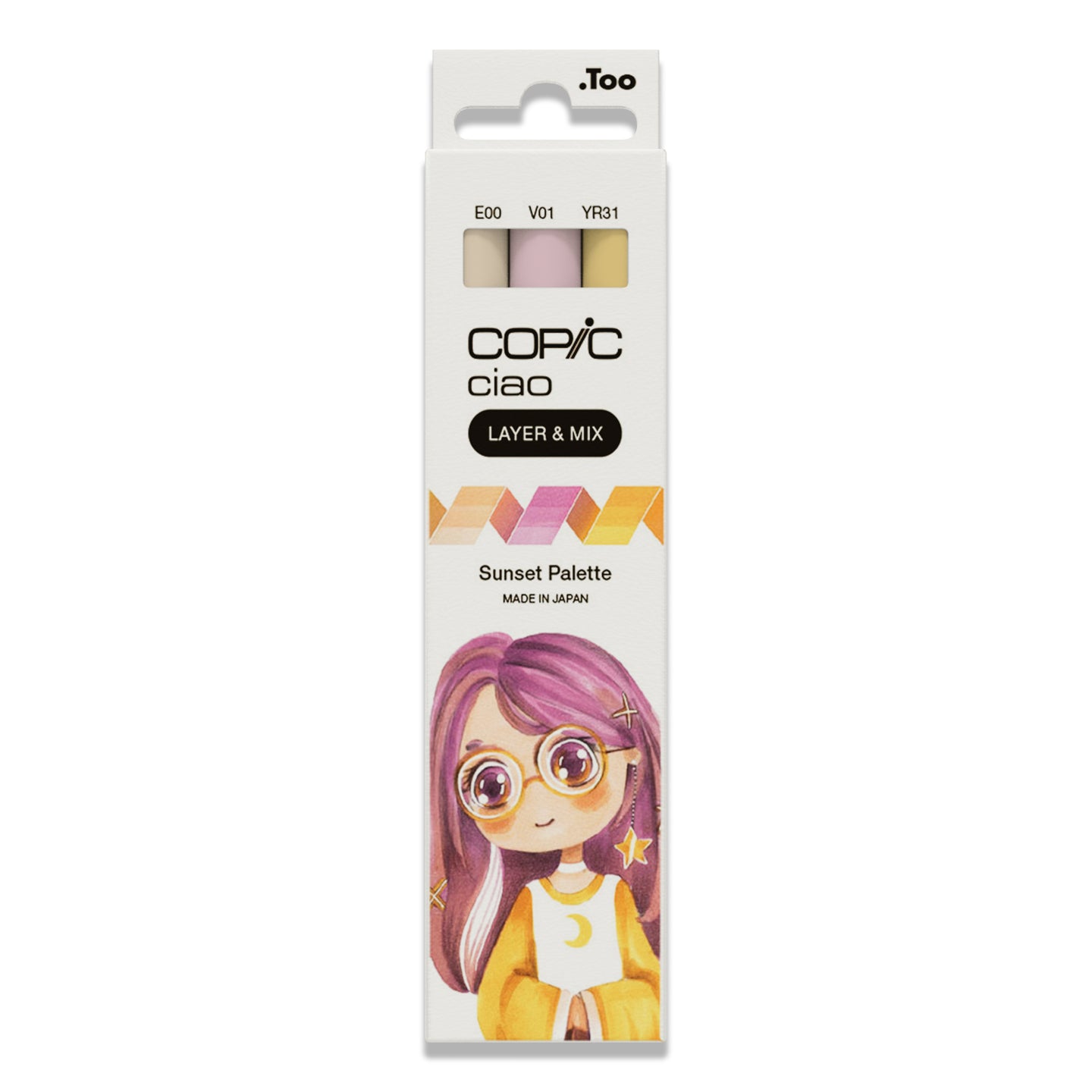 COPIC Ciao Layer & Mix Set Of 3 Pens, Sunset Palette Markers, Art, Craft Colouring, Graphic, Highlighter, Design, Anime Manga