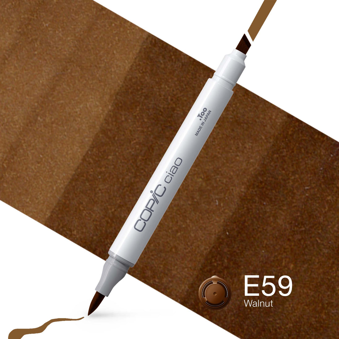 COPIC Ciao Coloured Marker Pen - (E-59) Walnut, For Art & Crafts, Colouring, Graphics, Highlighter, Design, Anime, Professional & Beginners, Art Supplies & Colouring Books