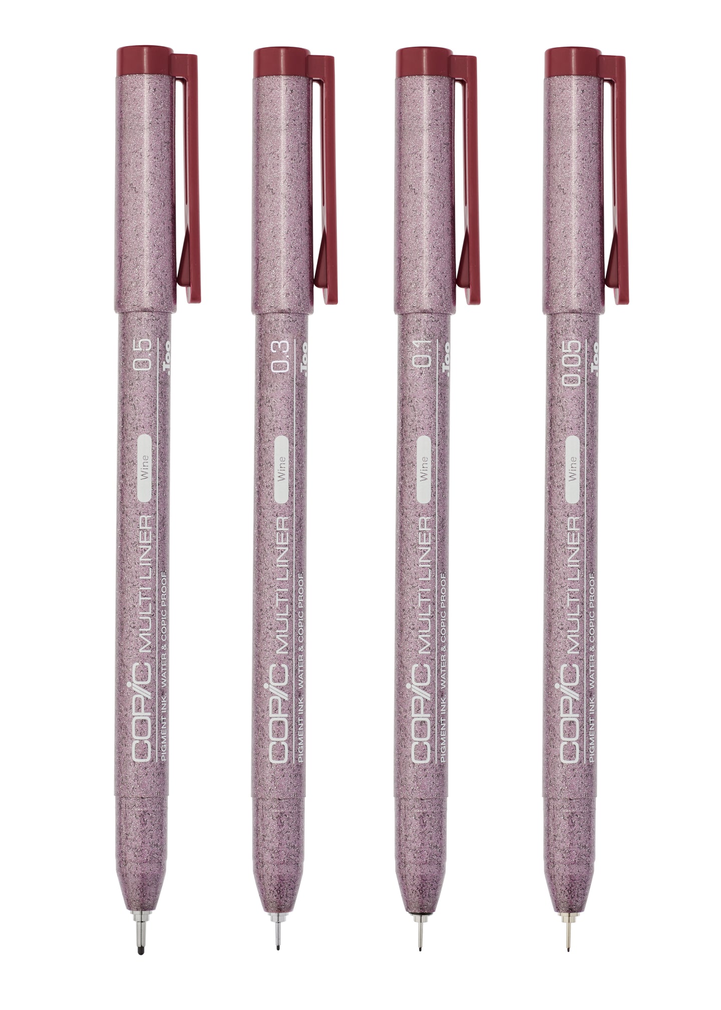COPIC Multiliner Coloured Marker Pen - wine Set 4 pcs. assorted, For Art & Crafts, Colouring, Graphics, Highlighter, Design, Anime, Professional & Beginners, Art Supplies & Colouring Books