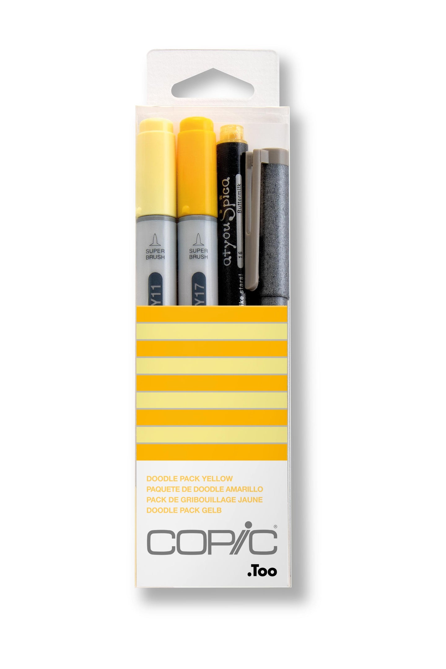 COPIC Ciao Coloured Marker Pen - Doodle Pack of 4 Yellow, For Art & Crafts, Colouring, Graphics, Highlighter, Design, Anime, Professional & Beginners, Art Supplies & Colouring Books