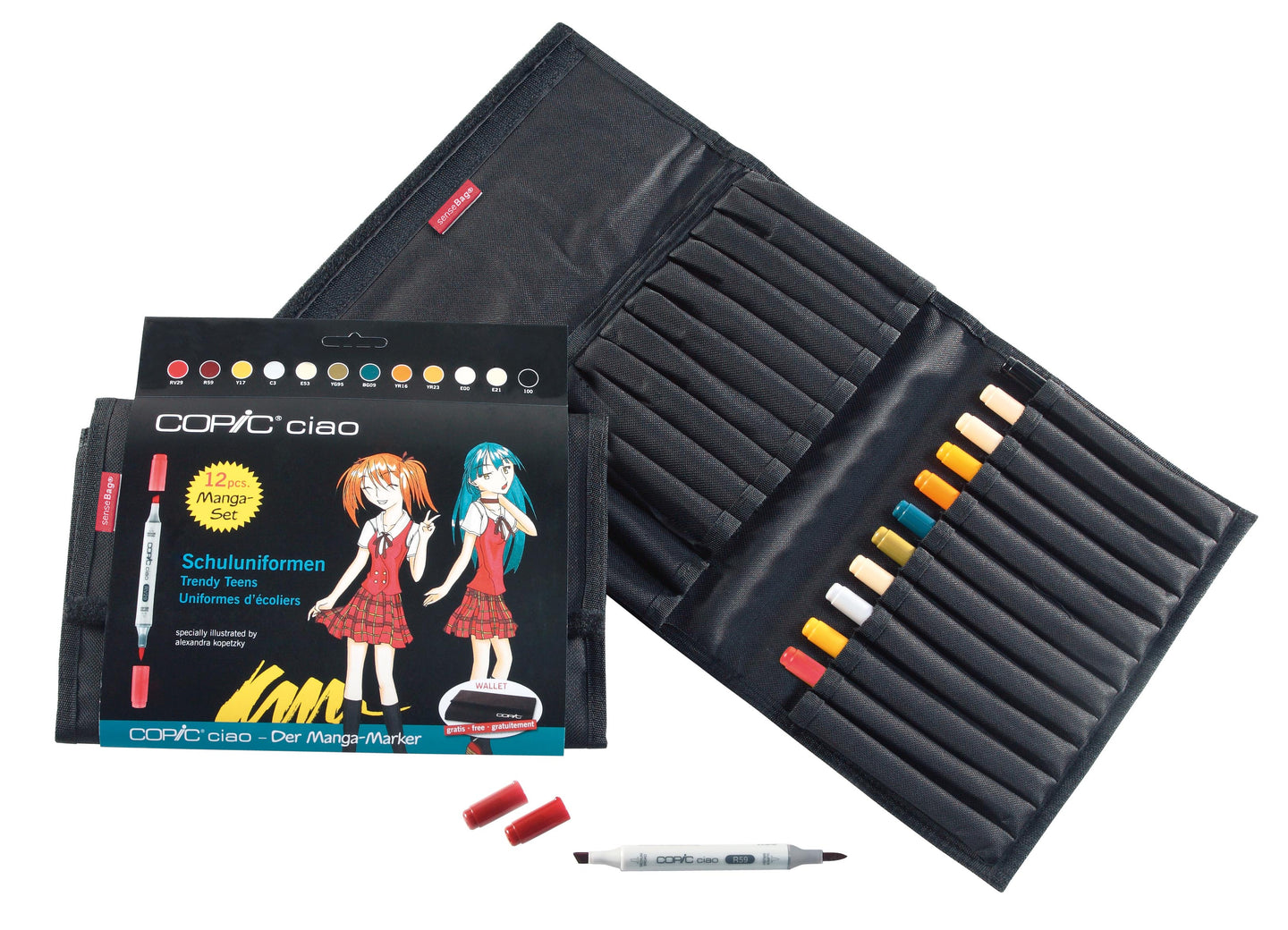 COPIC Ciao, the ideal introductory graphic marker, double ended design features a flexible Super Brush nib and a Medium Broad nib for tone, blending, shading, fine details and lines, streak free coverage, refillable, replaceable nibs, ultra blendable