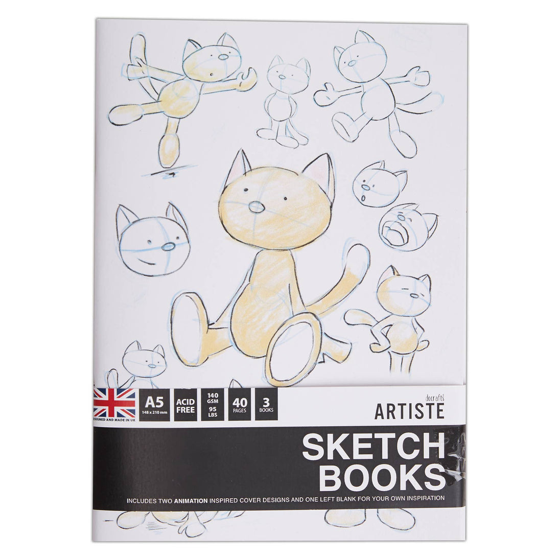 Artiste A5 Sketchbooks - Animation Notebooks - Pack of 3 For Drawing, Sketching, Doodling, Writing And Scrapbook Designs With Mixed Media, Pen, Ink, Painting And More