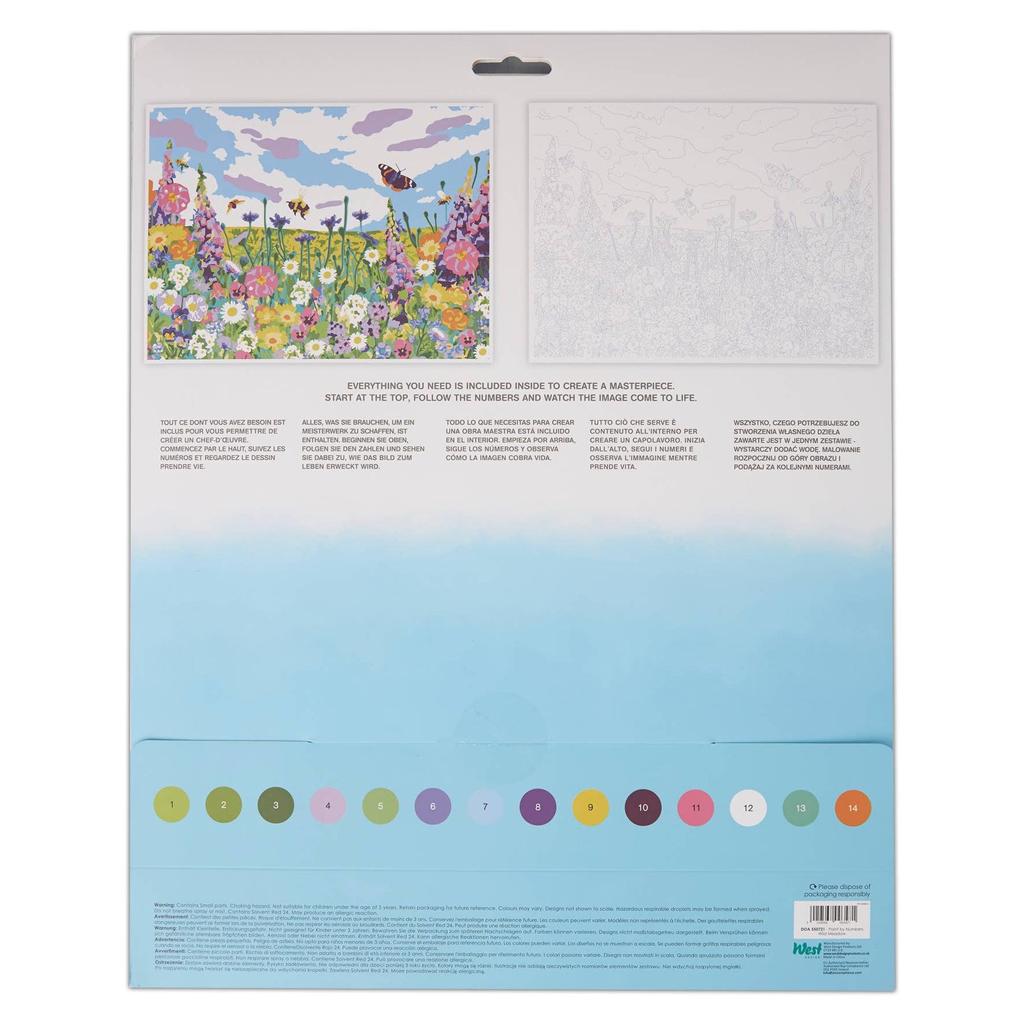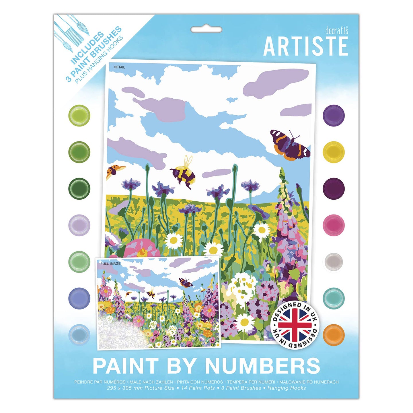 Artiste Acrylic Paint By Numbers Art Set - Wild Meadow - 14 Different Colour Paints, 3 Brushes, Ideal DIY Craft For Adults Or Older Kid, Brush A Masterpiece Art Work