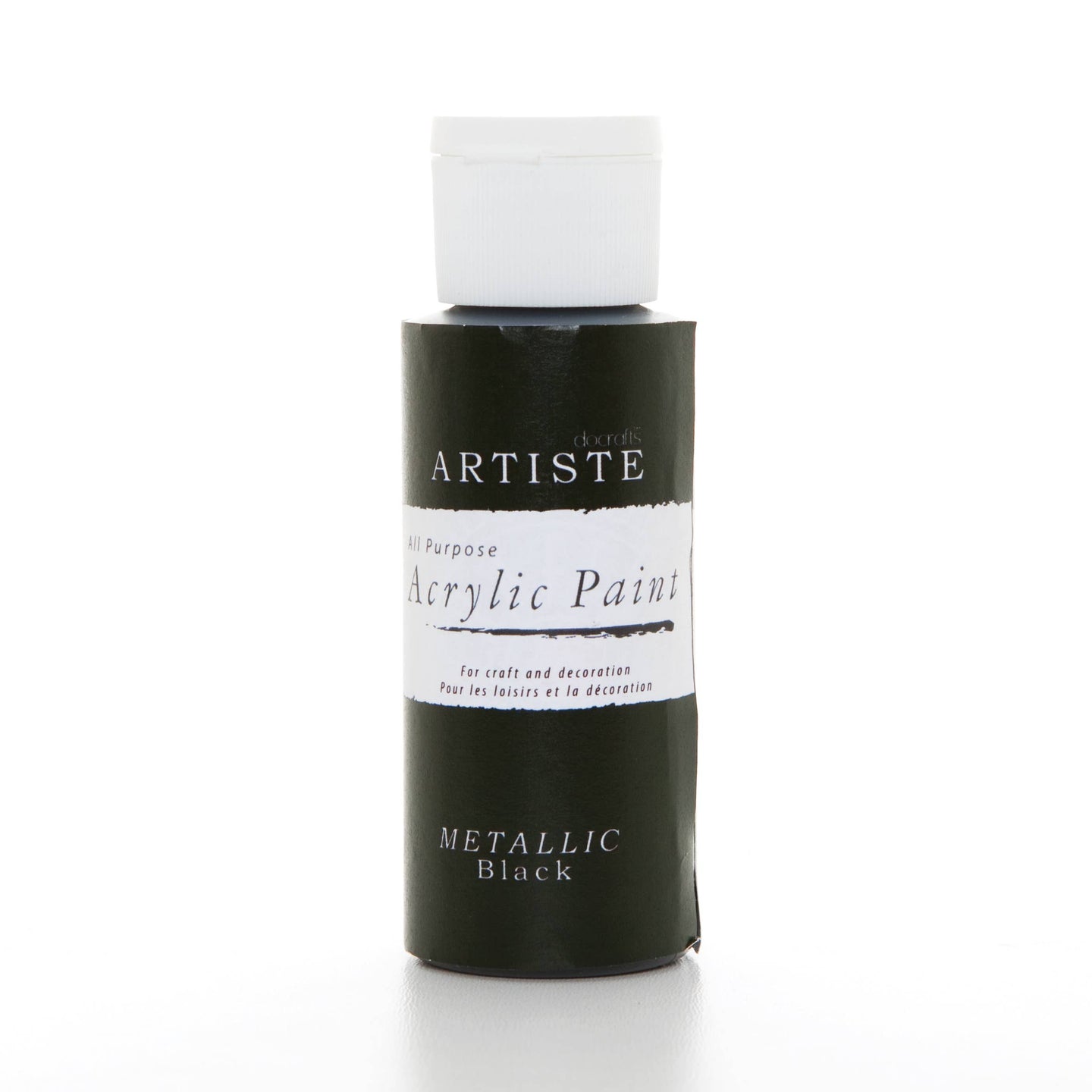 Artiste Acrylic Paint 59ml 2Oz Metallic Black, Quick-Drying Professional Art, Craft And Hobby Artists Paint, Vibrant Colour, Water-Based Paints Cover All Surfaces With Ease, Ideal For Travel Artists