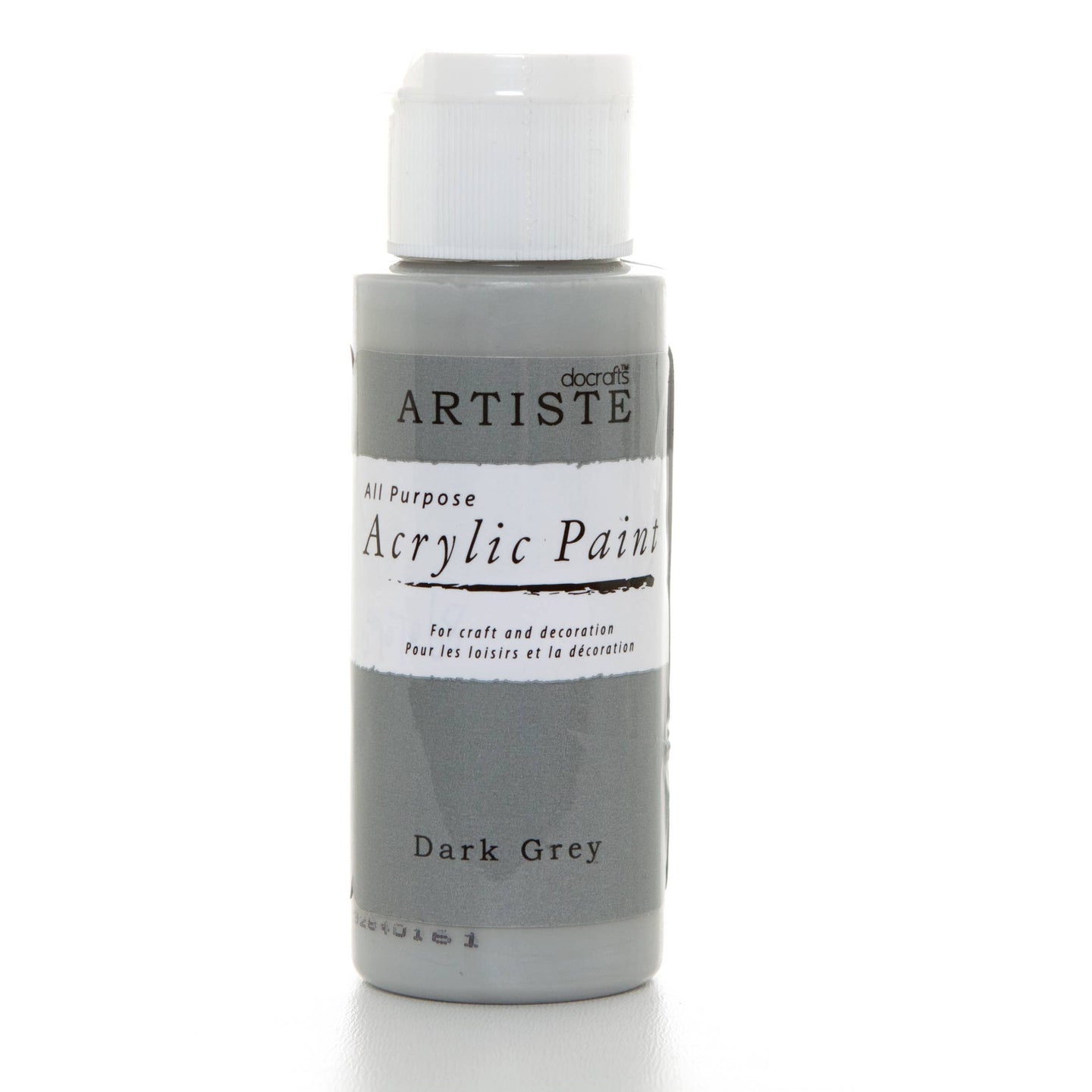 Artiste Acrylic Paint 59ml 2Oz Dark Grey, Quick-Drying Professional Art, Craft And Hobby Artists Paint, Vibrant Colour, Water-Based Paints Cover All Surfaces With Ease, Ideal For Travel Artists