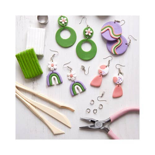 Unleash your inner fashionista with this Simply Make Clay Earring Kit. The perfect way to express yourself and create beautiful earrings using polymer clay which is easy to use and has a high quility finish. A perfect gift for friends or family! Kit includes polymer clay, rolling pin, modelling tools, earrings, presentation cards and instructions