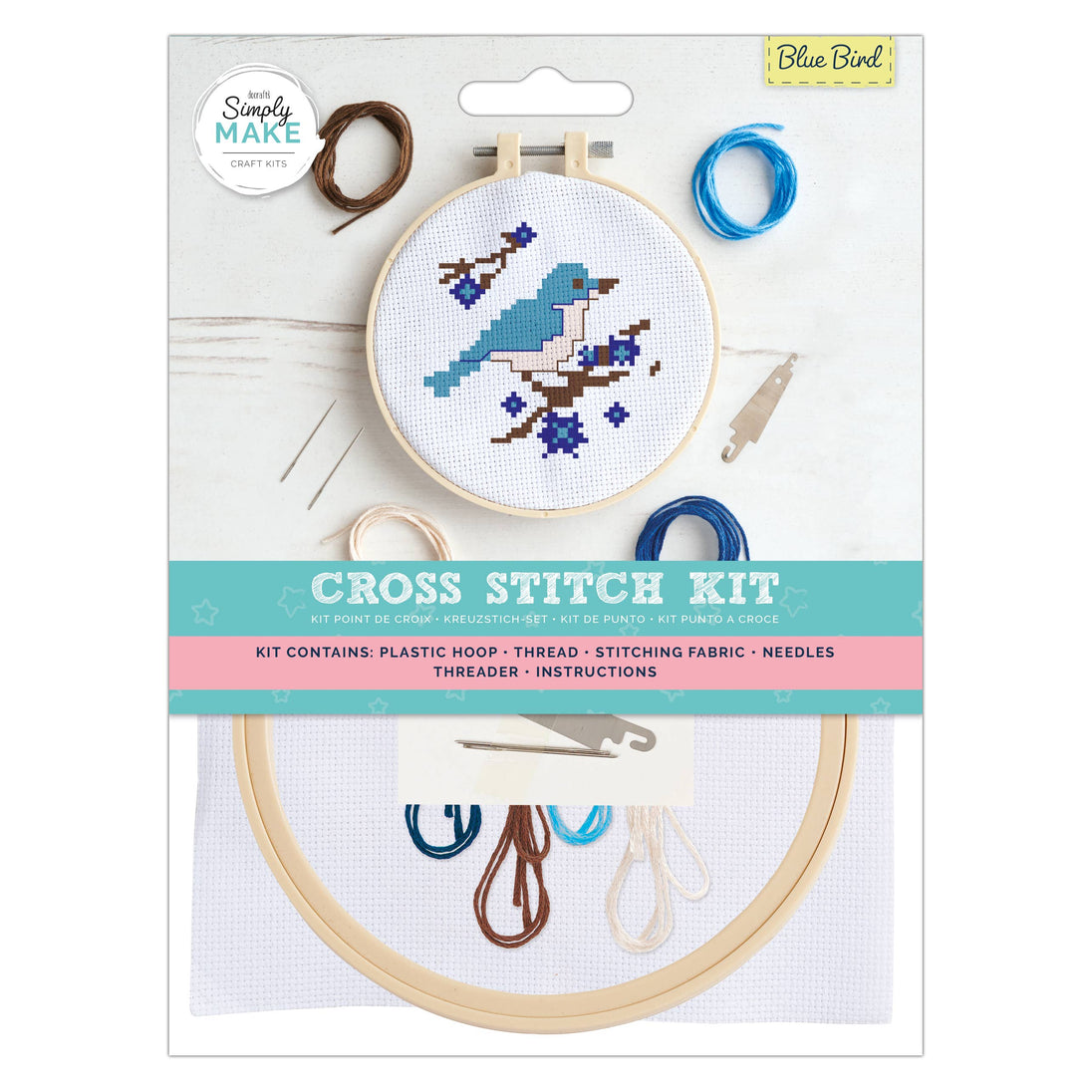Simply Make Cross Stitch Kit - Blue Bird Design for Kids and Adults, Including Hoop, Embroidery Thread, Fabric and Needle - Perfect for Adult Crafts and Beginners - Starter Cross Stitch Craft Kit