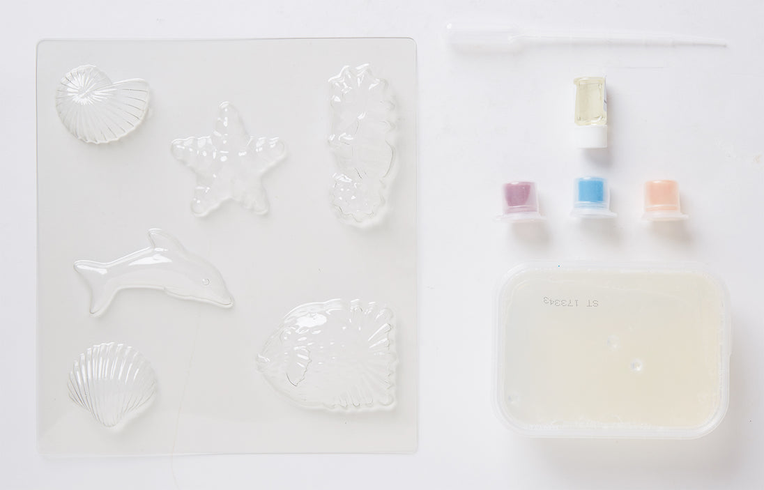 This stylish kit contains everything needed to create your own delicately scented soaps with the theme of the sea. Making your own decorative soap is a delightful and rewarding pastime. By combining soap compound colours and fragrance beautiful results can soon be achieved. Idea for perfect gifts. Kit includes soap compound three coloured dyes fragrance six mould shapes pipette and full instructions.