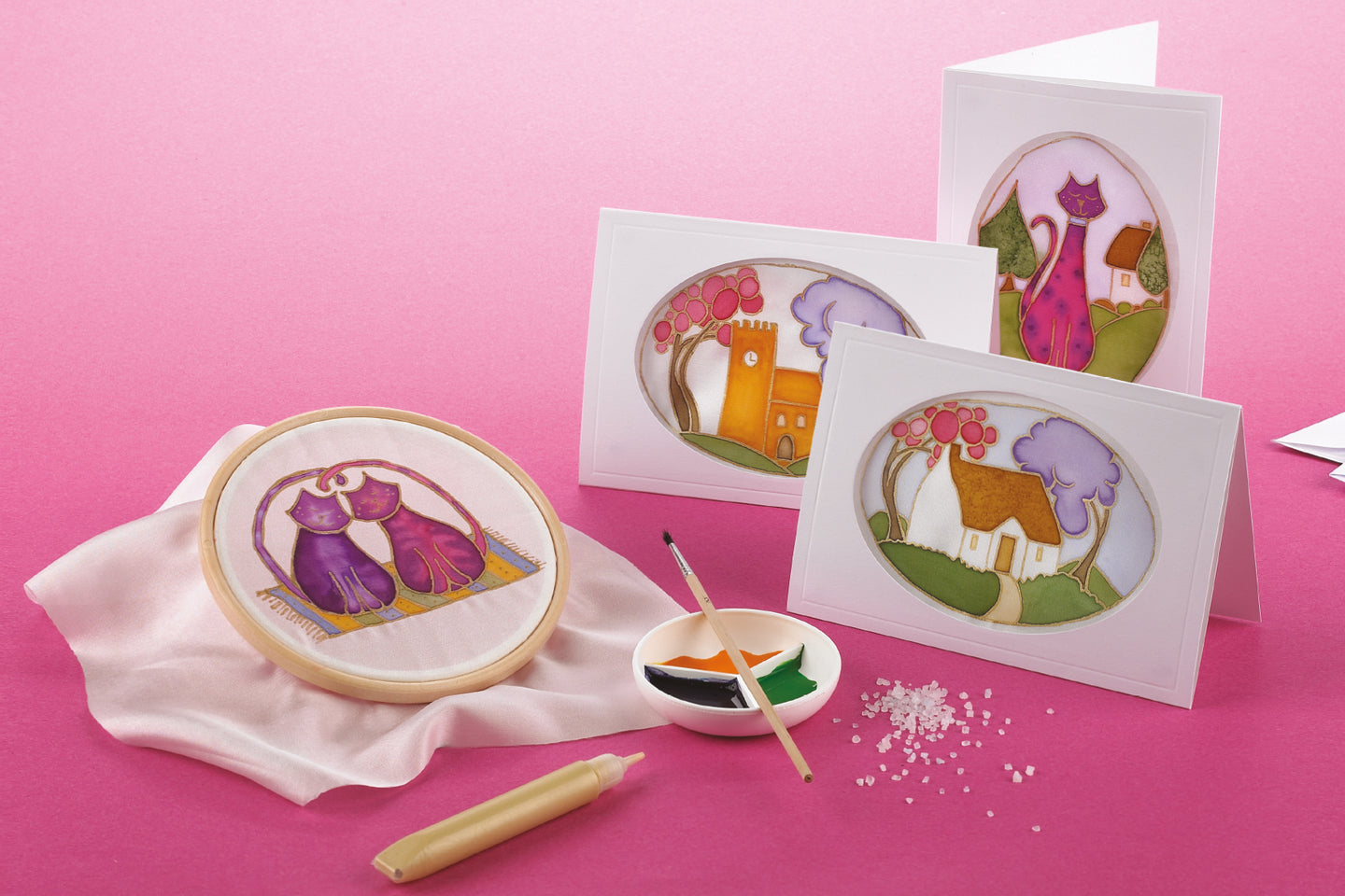The traditional art of silk painting combined with the ever popular craft of card decoration is the perfect marriage. Everything is included to create a distinctive selection of greeting cards.