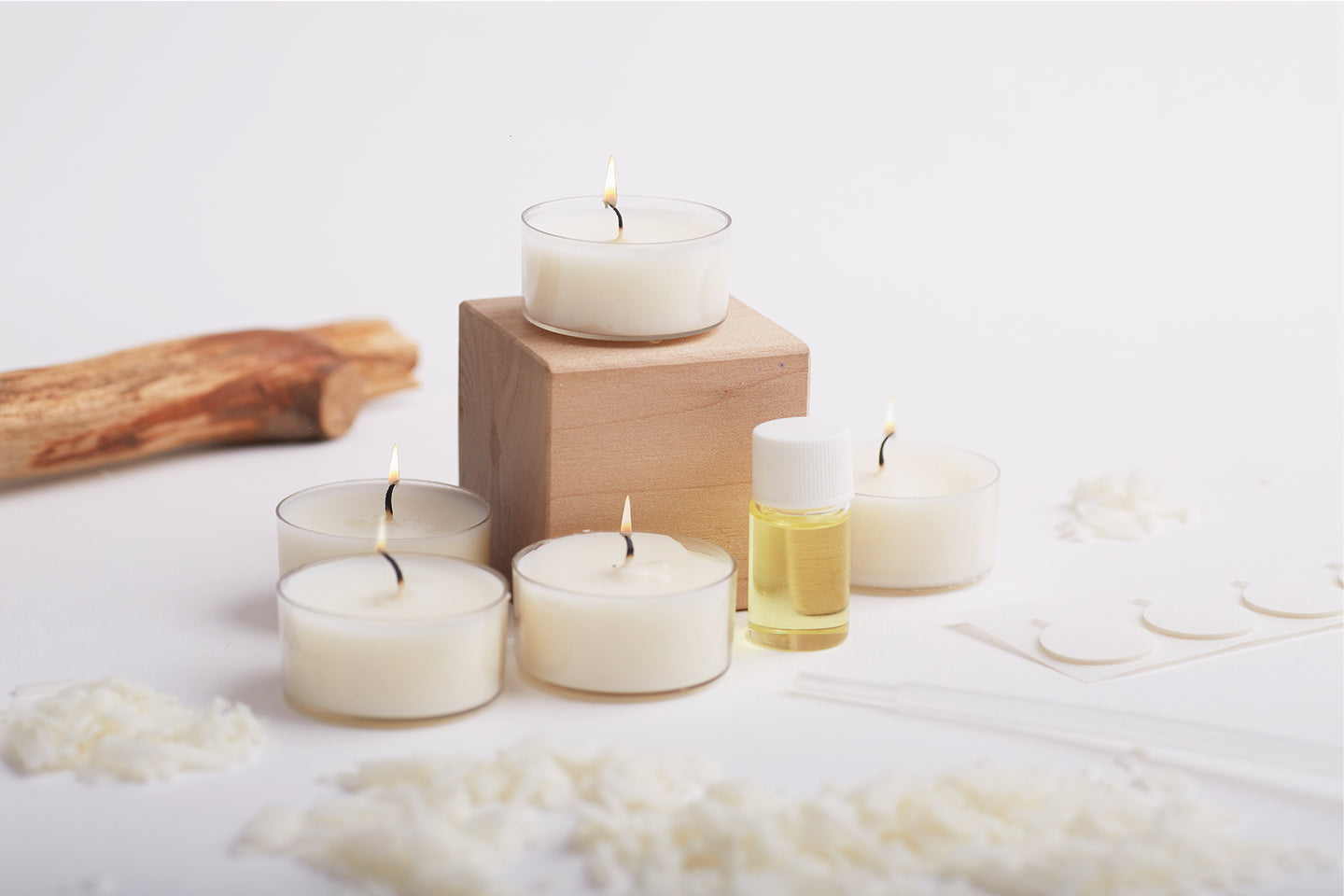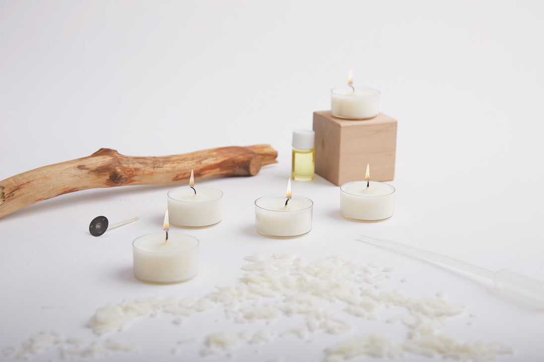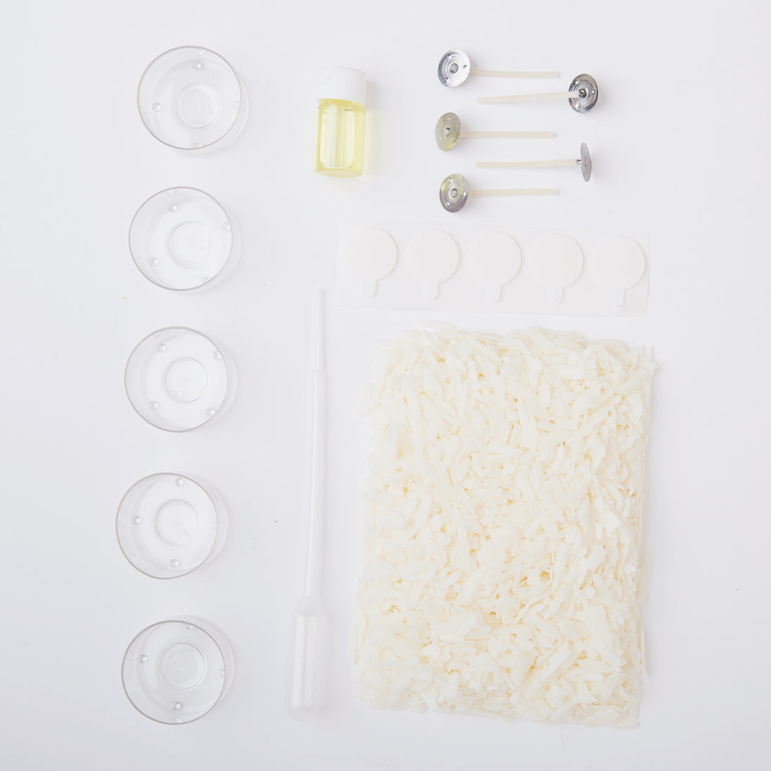 CONTENTS This kit contains all the materials required to produce stunning finished work including x5 clear polycarbonate tealight cases, 100g soy wax, x5 tealight wicks, 4ml vanilla fragrance oil, and a pipette