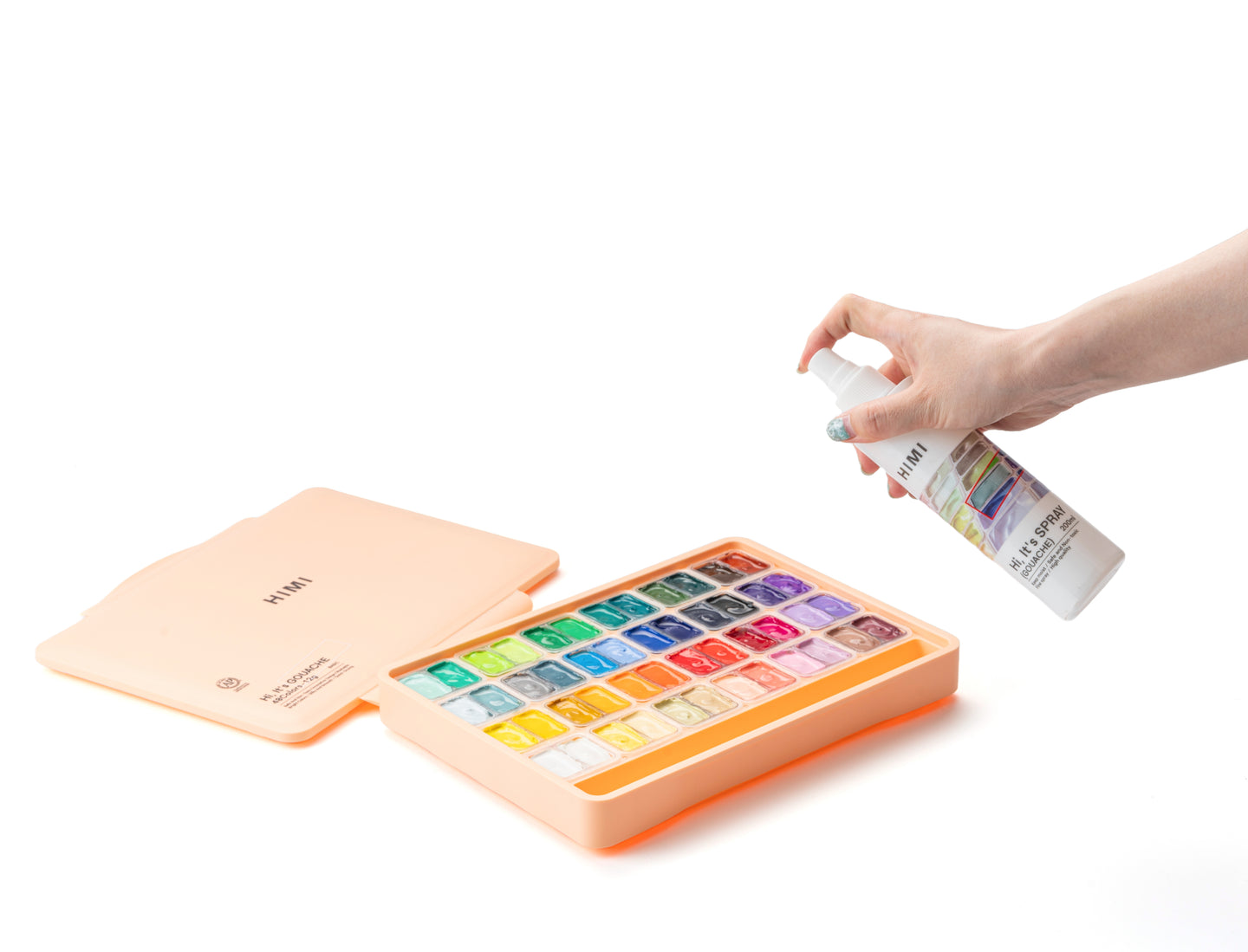 Keeps your HIMI gouache paints moist, fresh, and ready, locks in moisture and helps prevent bacteria. Extend the life of your paints with the HIMI Spray Gouache. A fine mist keeps gouache moist during long sessions, so colours stay workable and vibrant. Spray evenly after working with your HIMI gouache and close the case lid. If you’re not using the paints for a while, give one spray a month to keep them juicy and prevent drying or cracking. Specially designed to lock in moisture and inhibit bacteria(mold) growth, this spray keeps your palette clean and your colours lasting longer. With its leak-proof design, it’s light, easy to use, safe, and the perfect companion for all HIMI gouache sets, whether you’re working with 18 colours or the full 112. Simply spray, paint, and enjoy colours that stay fresh from the first stroke to the last.