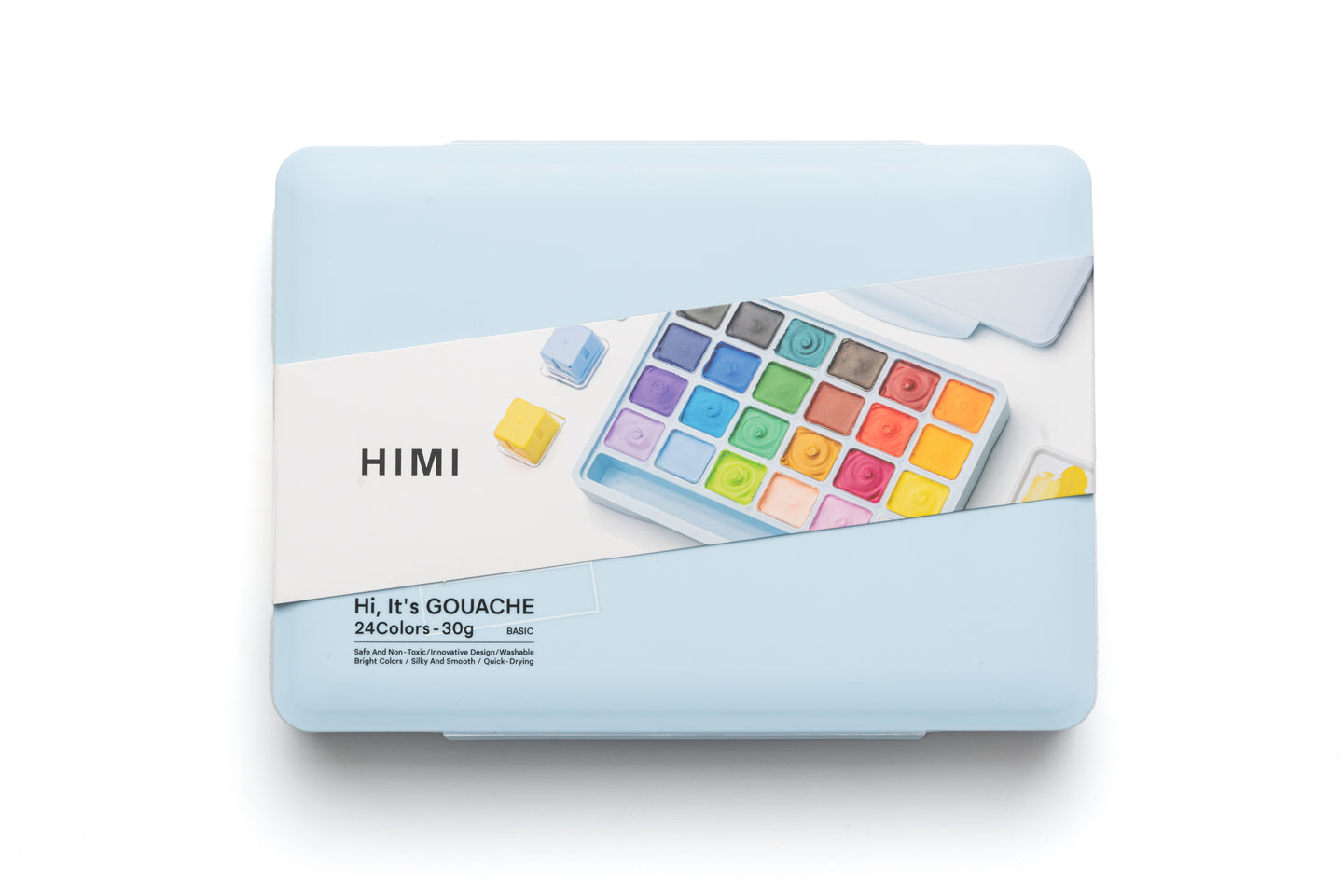 24 basic colours in an ice blue case, opaque gouache paints ready for beginners and creative explorers alike. Paint without pressure. The HIMI Jelly Cup Gouache Set brings together 24 rich colours that stay bright and matte, never chalky or dull. Each colour is made with peach gum and fine pigments for a silky flow and smooth coverage on paper. Gouache reactivates with water, so nothing goes to waste. Just add a drop to bring colours back to life. Easy to clean, safe, and non-toxic, this set is as practical as it is inspiring. Tip: Pair this set with the HIMI Spray to keep paints moist and fresh for longer sessions. The compact ice blue case keeps everything organised and portable, whether you’re painting at home, in class, or on the go. Grab your brush and you can start creating right away. Suitable for artists of every level who want to add colour to their world.