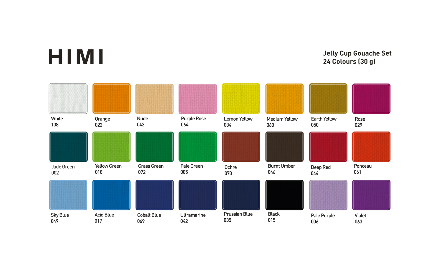 24 basic colours in a green case, opaque gouache paints ready for beginners and creative explorers alike. Paint without pressure. The HIMI Jelly Cup Gouache Set brings together 24 rich colours that stay bright and matte, never chalky or dull. Each colour is made with peach gum and fine pigments for a silky flow and smooth coverage on paper. Gouache reactivates with water, so nothing goes to waste. Just add a drop to bring colours back to life. Easy to clean, safe, and non-toxic, this set is as practical as it is inspiring. Tip: Pair this set with the HIMI Spray to keep paints moist and fresh for longer sessions. The compact green case keeps everything organised and portable, whether you’re painting at home, in class, or on the go. Grab your brush and you can start creating right away. Suitable for artists of every level who want to add colour to their world.
