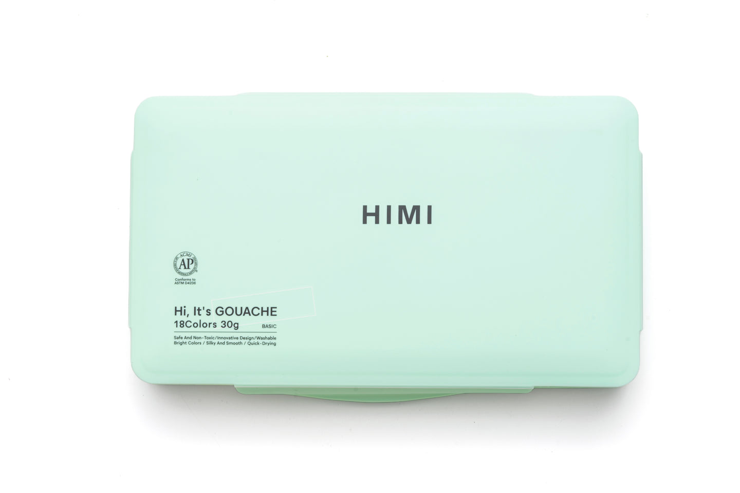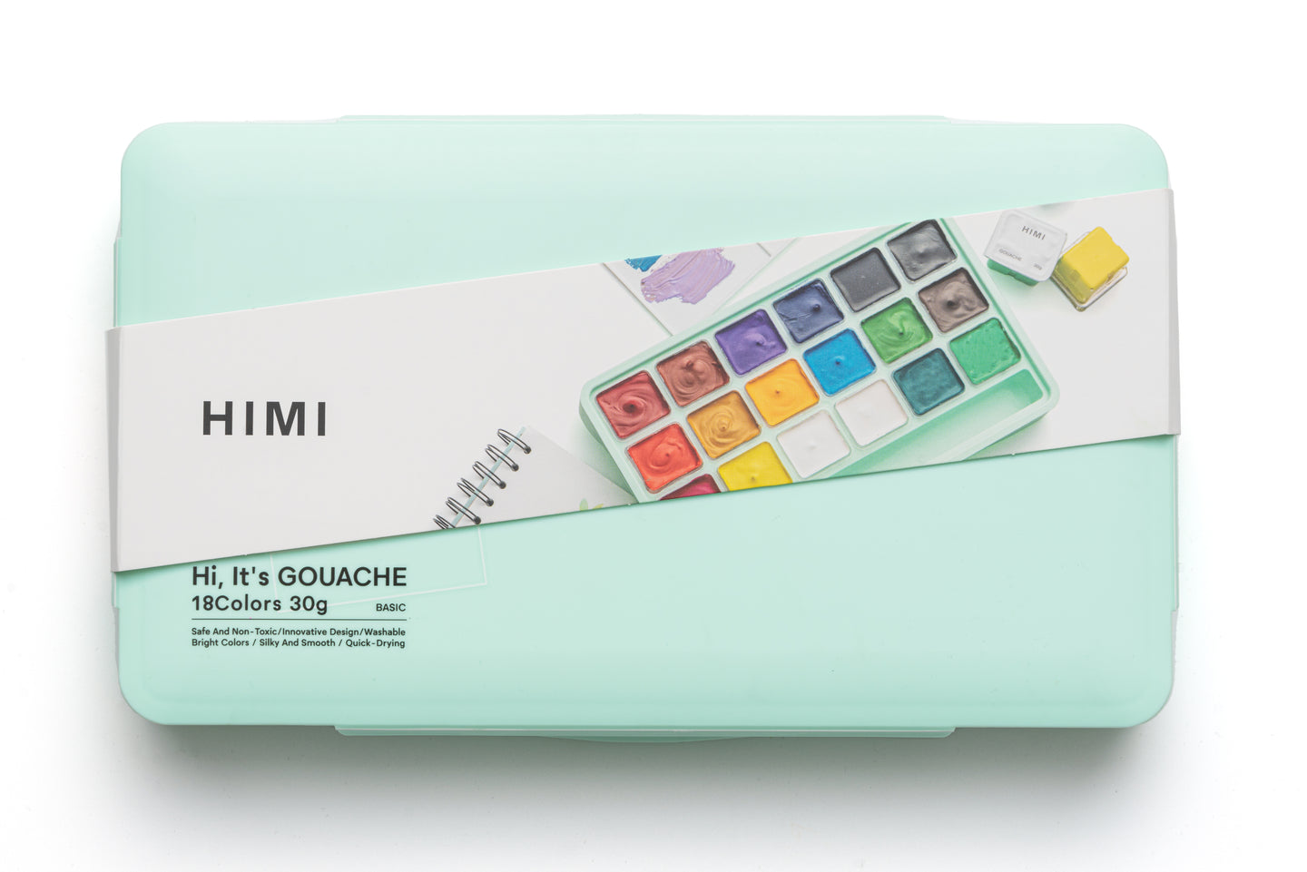 HIMI Jelly Cup Gouache Set 18 Paint Colours, Green Case, Add Water To Reactivate, Smooth, Rich Colours, Gift, Artist Art Supplies, Large Scale Art Work To Fine Details, Ready To Use Gouache Colors