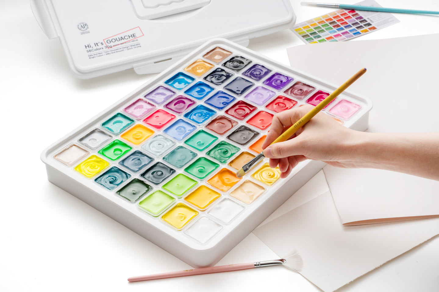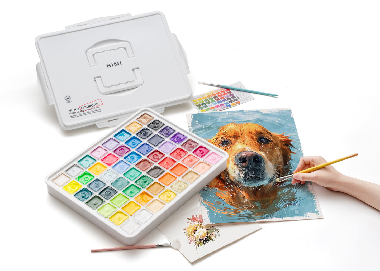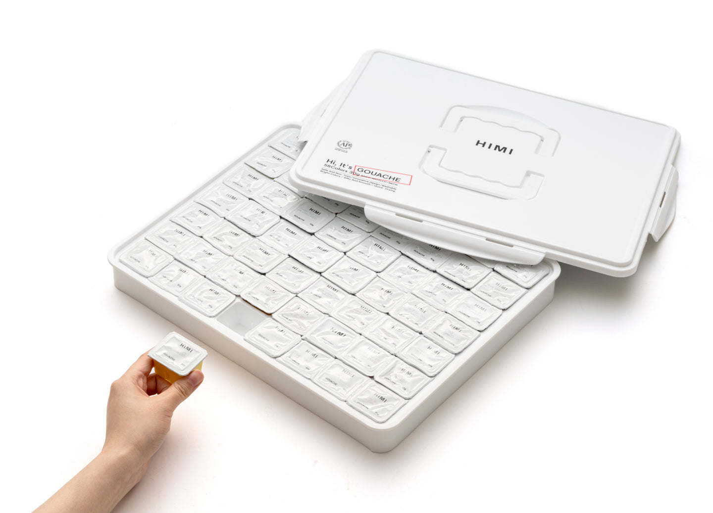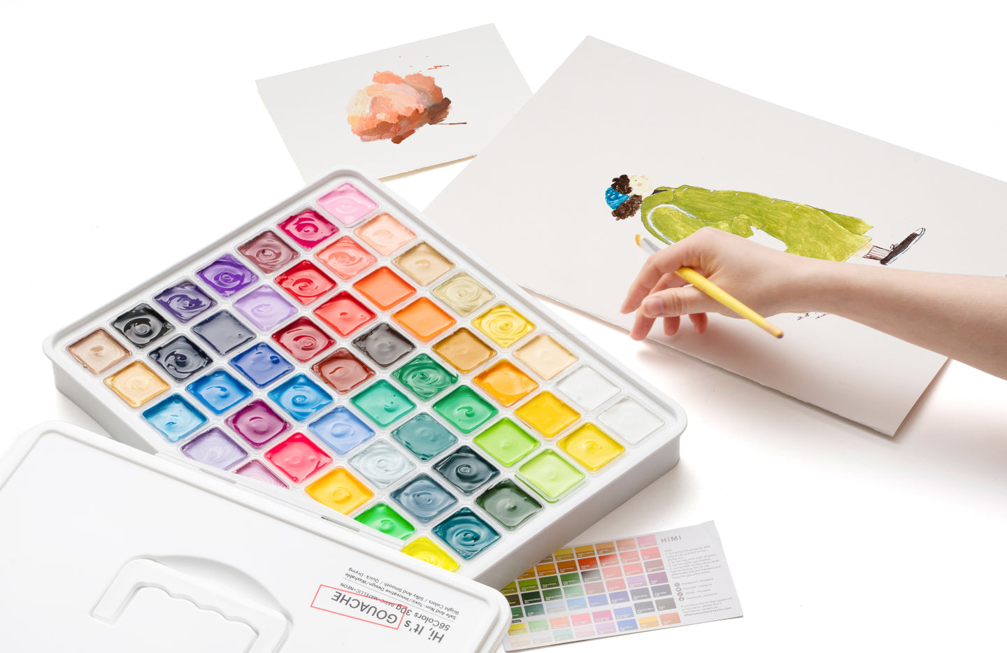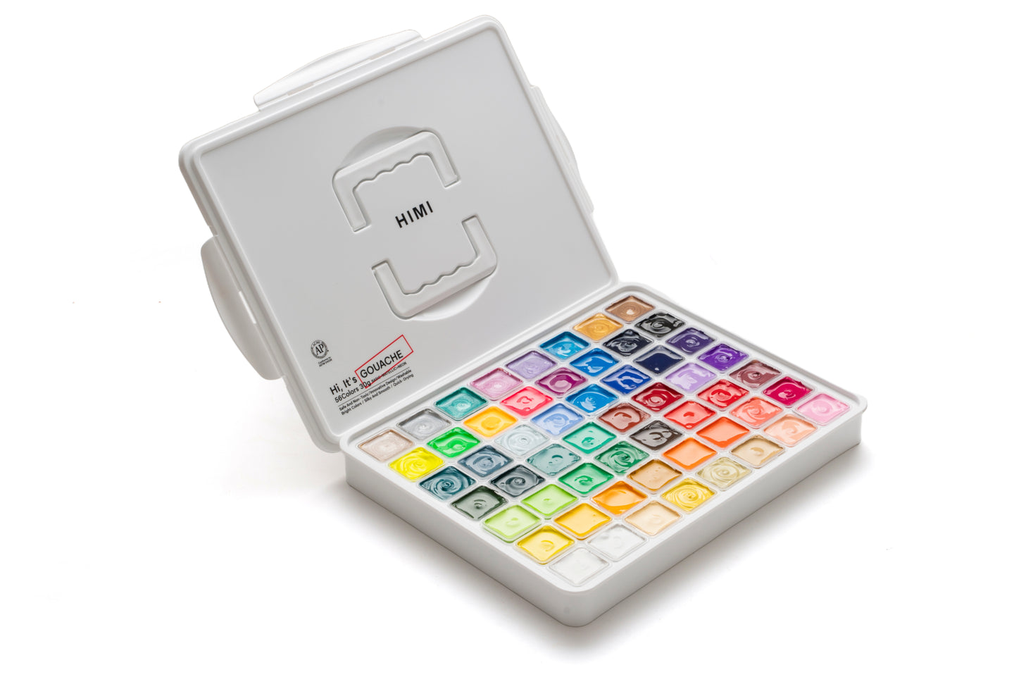 HIMI Jelly Cup Gouache Set 56 Paint Colours, White Case, Add Water To Reactivate, Smooth, Rich Colours, Gift, Artist Art Supplies, Large Scale Art Work To Fine Details, Ready To Use Gouache Colors