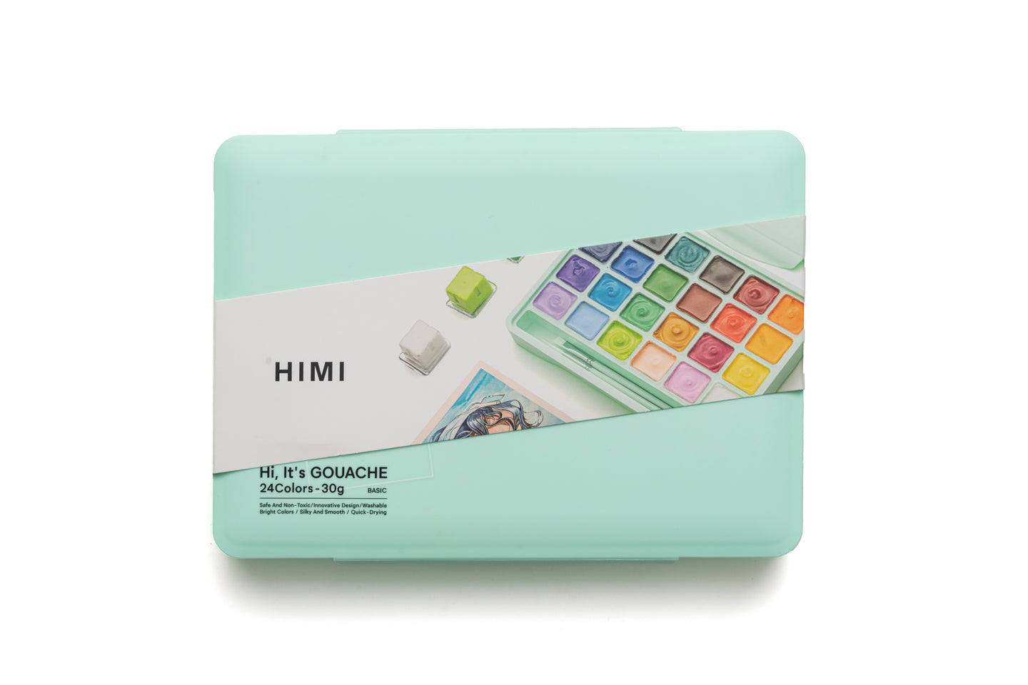 24 basic colours in a green case, opaque gouache paints with 3 handy brushes, ready for beginners and creative explorers alike. Paint without pressure. The HIMI Jelly Cup Gouache Set brings together 24 rich colours that stay bright and matte, never chalky or dull. Each colour is made with peach gum and fine pigments for a silky flow and smooth coverage on paper. Gouache reactivates with water, so nothing goes to waste. Just add a drop to bring colours back to life. Easy to clean, safe, and non-toxic, this set is as practical as it is inspiring. Tip: Pair this set with the HIMI Spray to keep paints moist and fresh for longer sessions. The compact case keeps everything organised and portable, whether you’re painting at home, in class, or on the go. Along with the paints, you’ll find 3 versatile synthetic brushes: round, flat, and filbert in popular everyday sizes, so you can start creating right away. Suitable for artists of every level who want to add colour to their world.