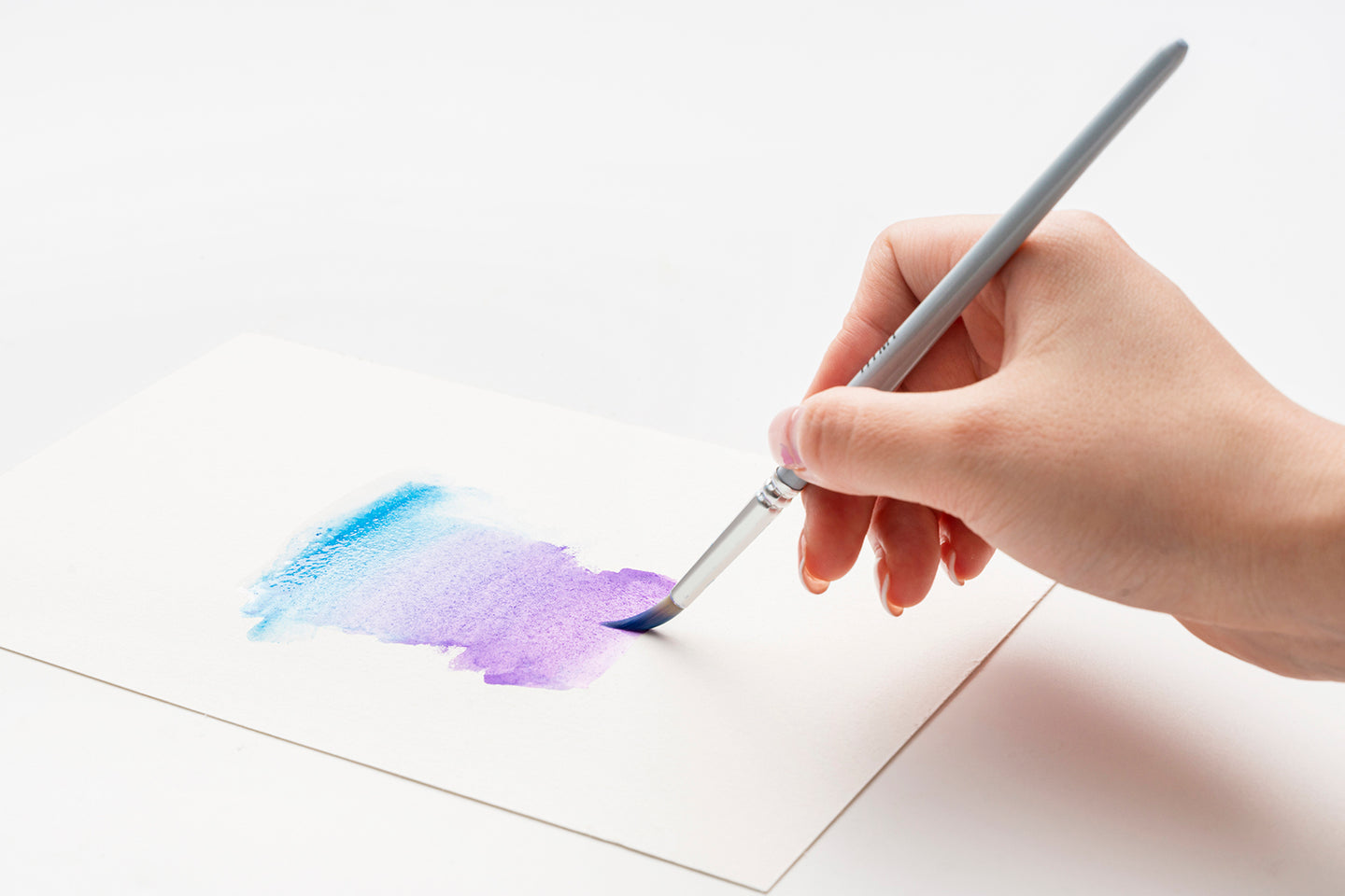24 bright colours in a blue case, with a free round synthetic brush, perfect for young artists and creative beginners.