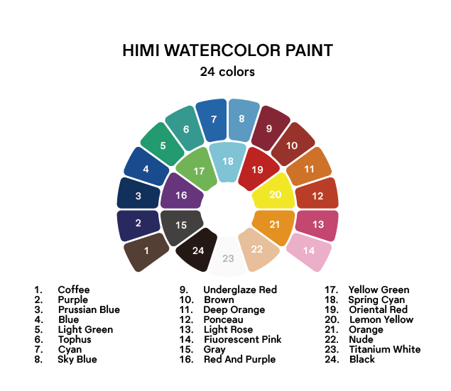 Enjoy painting with the HIMI Solid Watercolour Snail Set. With 24 vivid shades, this set is designed especially for kids, it is easy to use, +L56olours bright. Made with fine pigments and gum arabic, these paints blend smoothly and are safe and easy to clean.