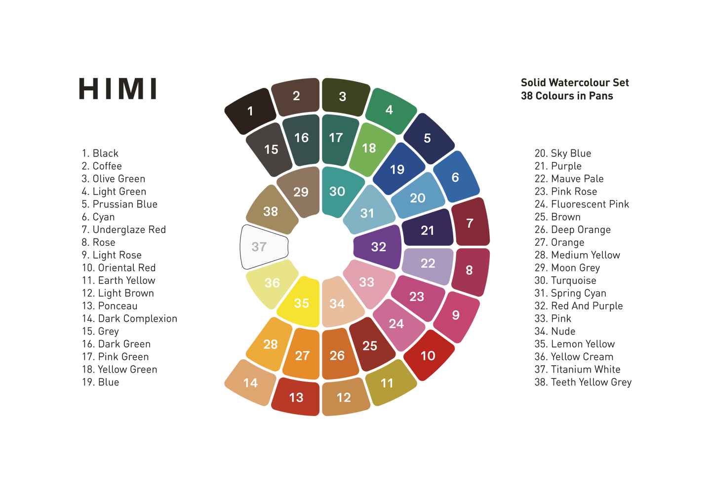 Enjoy painting with the HIMI Solid Watercolour Snail Set. With 38 vivid shades, this set is designed especially for kids, it is easy to use, clean, and full of cheerful colour.