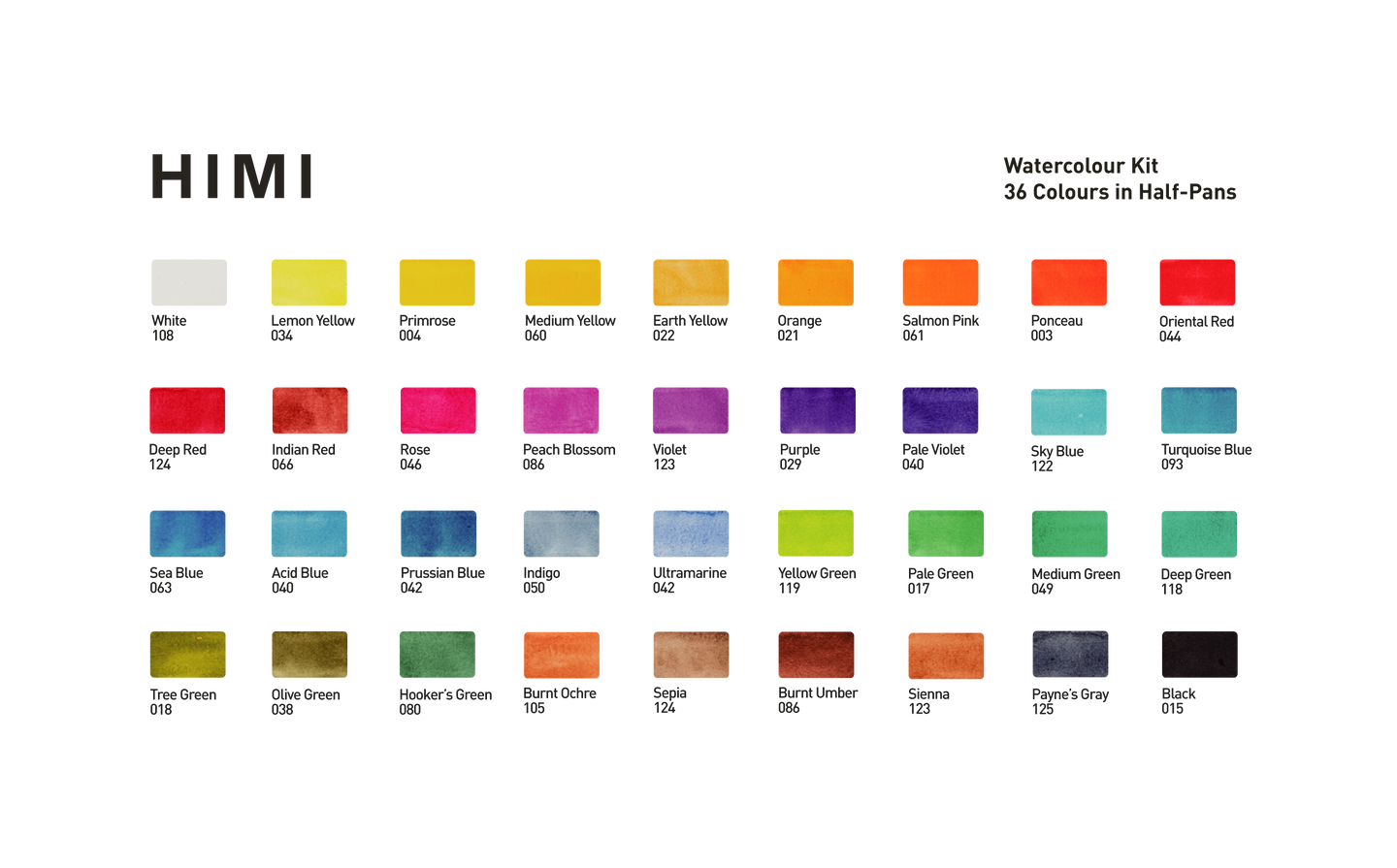 Loved by illustrators and sketchers, the HIMI Watercolour Kit is made for those who like to capture the world as they see it, right here and now. With 36 rich colours made from fine pigments and gum arabic, it offers smooth flow, clean mixing, and bright tones that come to life with just a touch of water.