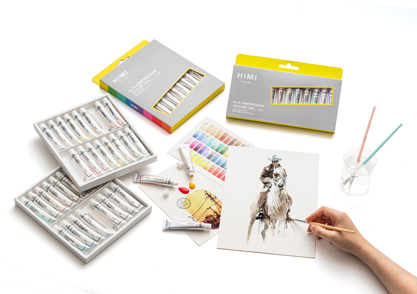 HIMI Watercolour Set 18 Colours 12ml Tubes, Pure Paint Colour, Inspiring Design, Artist Art Supplies, Gift, Watercolor Materials, Lightfast Paints, Vivid Results, High Pigments, Gum Arabic