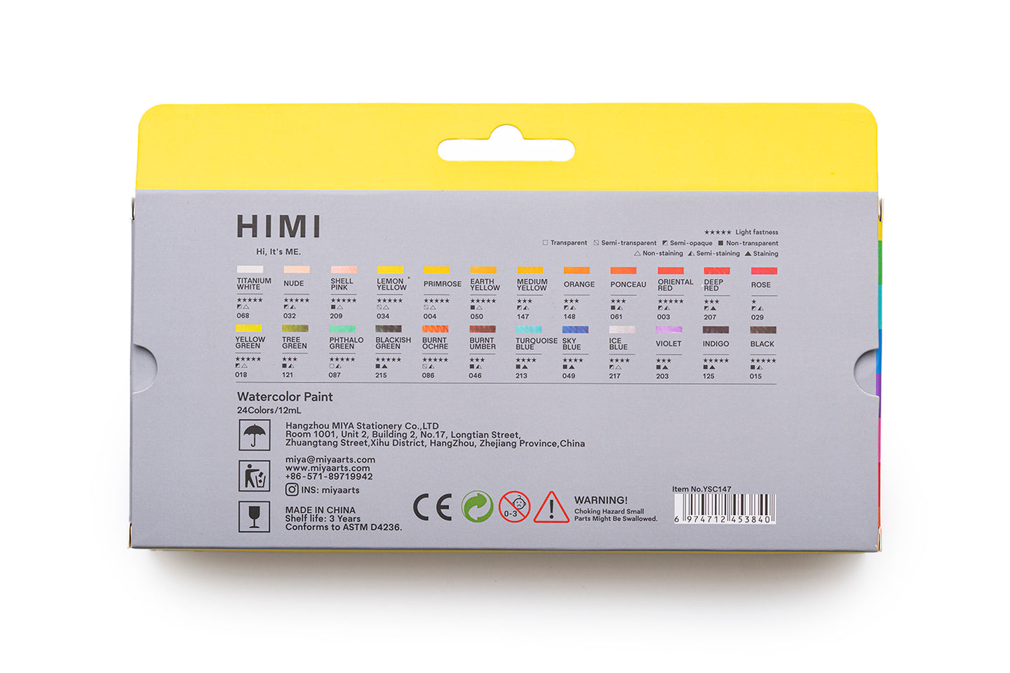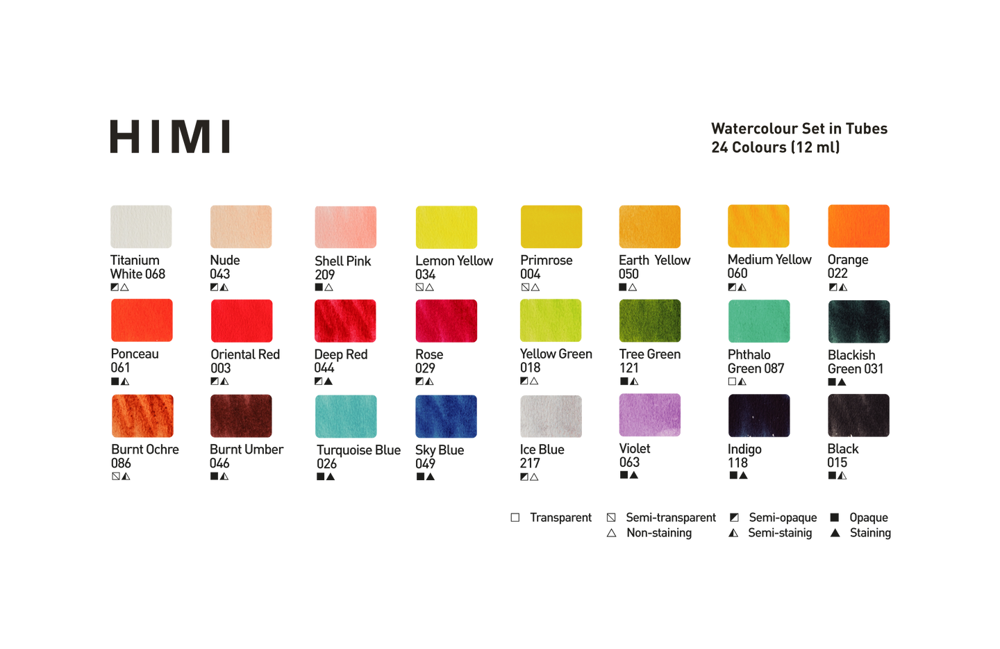 HIMI Watercolour Set 24 Colours 12ml Tubes, Pure Paint Colour, Inspiring Design, Artist Art Supplies, Gift, Watercolor Materials, Lightfast Paints, Vivid Results, High Pigments, Gum Arabic
