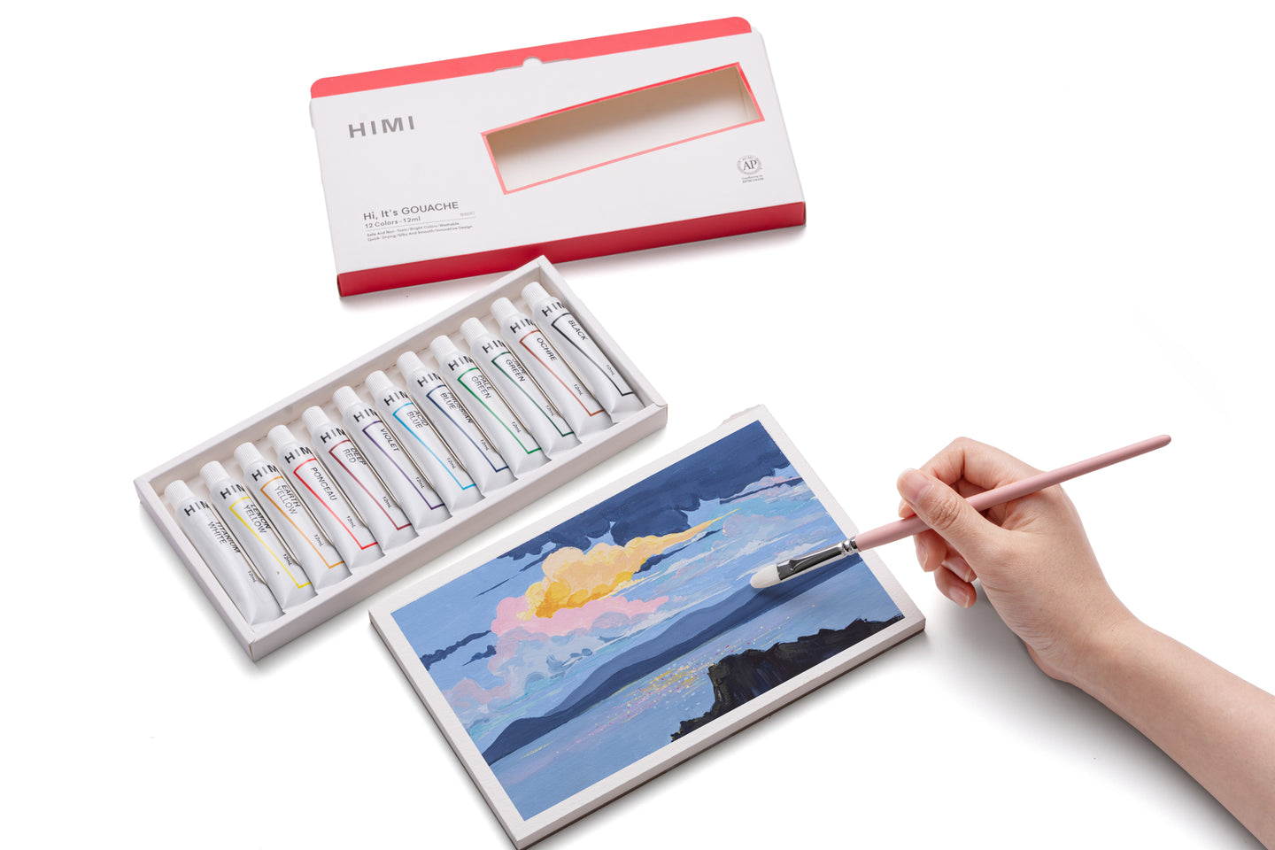 HIMI Tube Gouache Set, 12 Colours 12 ml, Paint For Precision Work, Mixing Colors, Artist Supplies, Art Painting Gift, Vibrant Colors, Beginners Gouache Paint Set, Safe, Non-Toxic Paint, Handy Tubes