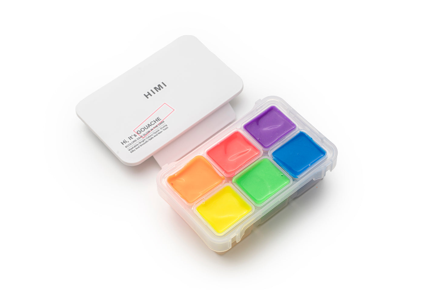 HIMI Jelly Cup Gouache Set 6 Paint Colours, White Case, Glow In The Dark Add Water To Reactivate, Smooth, Rich Colours, Gift, Artist Art Supplies, Large Scale Art Work To Fine Details, Ready To Use