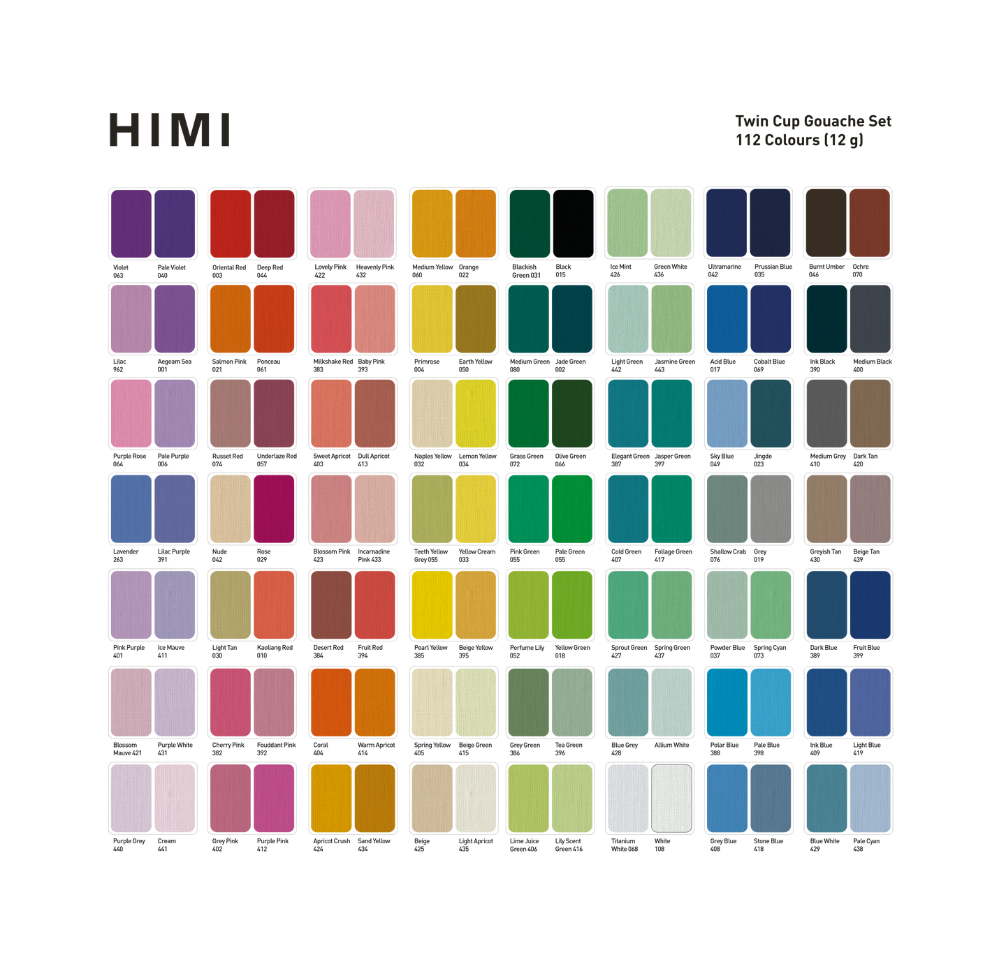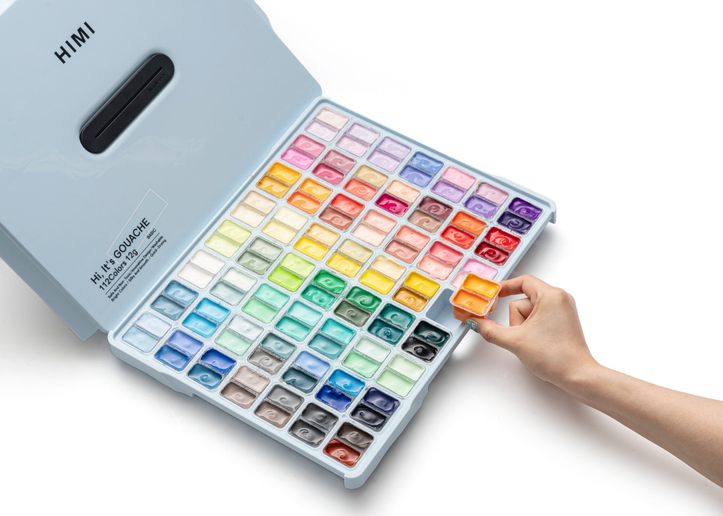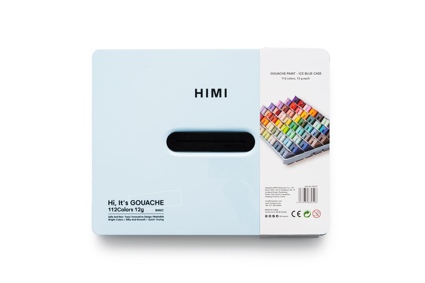 HIMI Twin Cup Gouache Set 112 Paint Colours, Ice Blue Case, Add Water To Reactivate, Smooth, Rich Colours, Gift, Artist Art Supplies, Large Scale Art Work To Fine Details