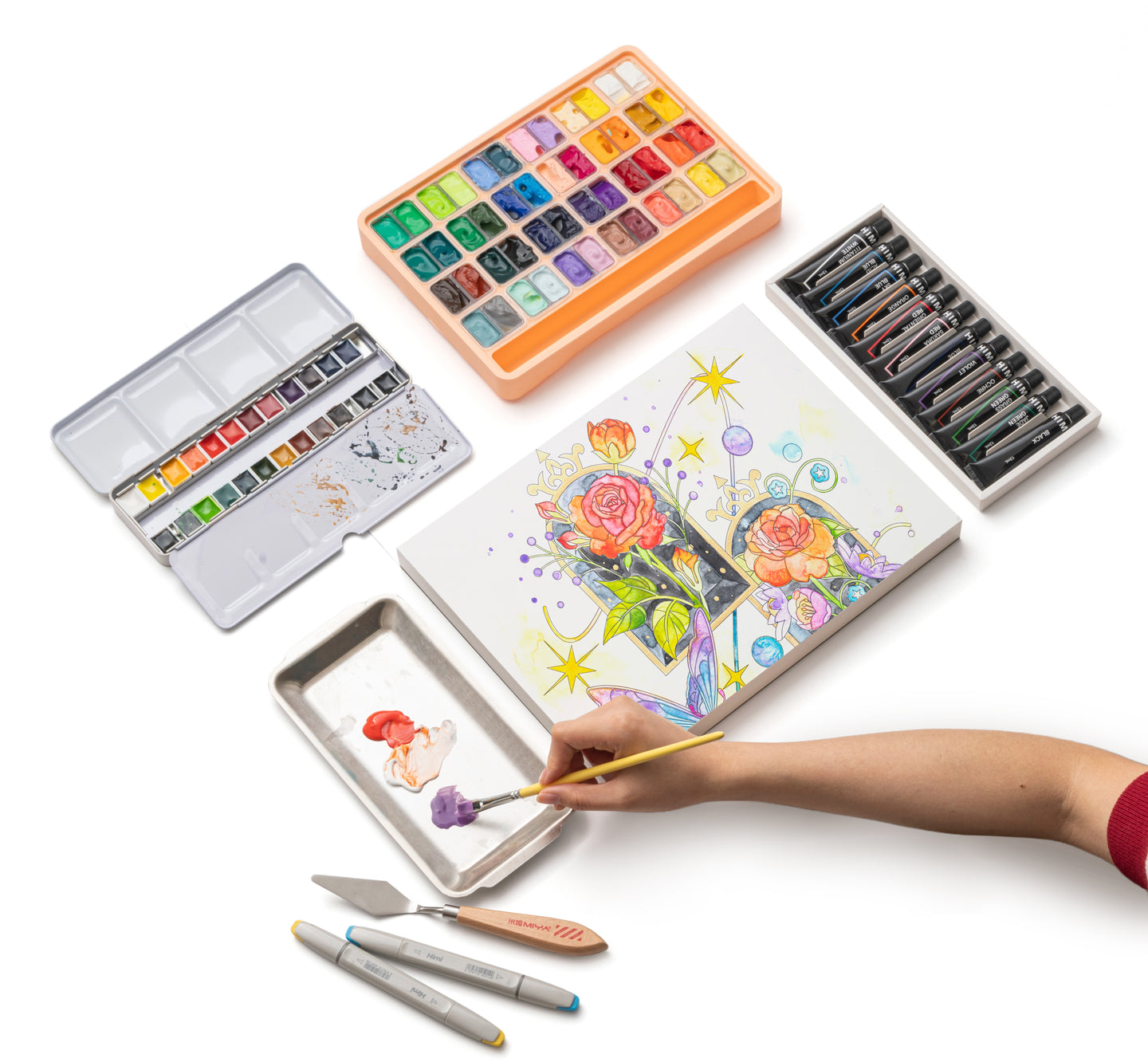 The HIMI Mixed Media Pad 22.9 x 30.5 cm is made for artists of all levels who love to paint, test, and create regularly. The 180 g natural white paper erases well, blends smoothly, and resists curling. Each sheet has a fine surface texture that holds colour beautifully without bleeding. Acid-free means it won’t yellow over time, so your artworks stay bright and fresh for years. Each block is glued on all four sides to keep pages flat while you work. When your painting is finished, simply slide a painting knife through the side opening to remove the sheet cleanly. With 90 sheets in this pad, it will assist in daily studies, experiments, and active creative practice.