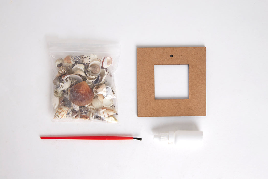 CONTENTS This kit contains all the materials required to produce stunning finished work including selection of seashells, MDF frame, PVA adhesive, varnish, brush, and a handy set of instructions in English, French and Italian