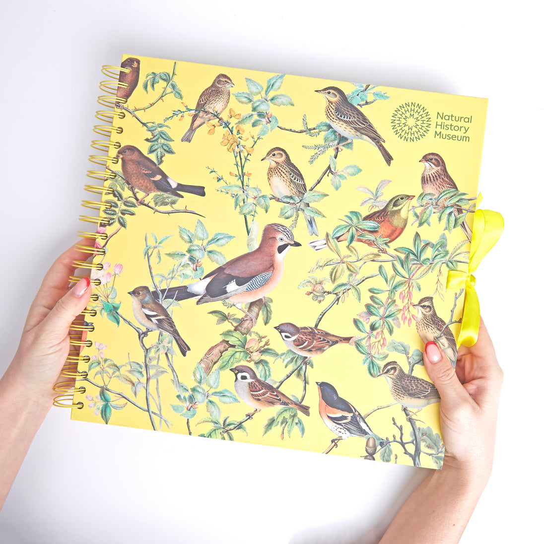 Natural History Museum Wiro Bound Hardback Scrapbook, 40 Pages, White Paper, Flock, 12" x 12", Multicoloured, With Coordinating Ribbon Closure And Wire Colours