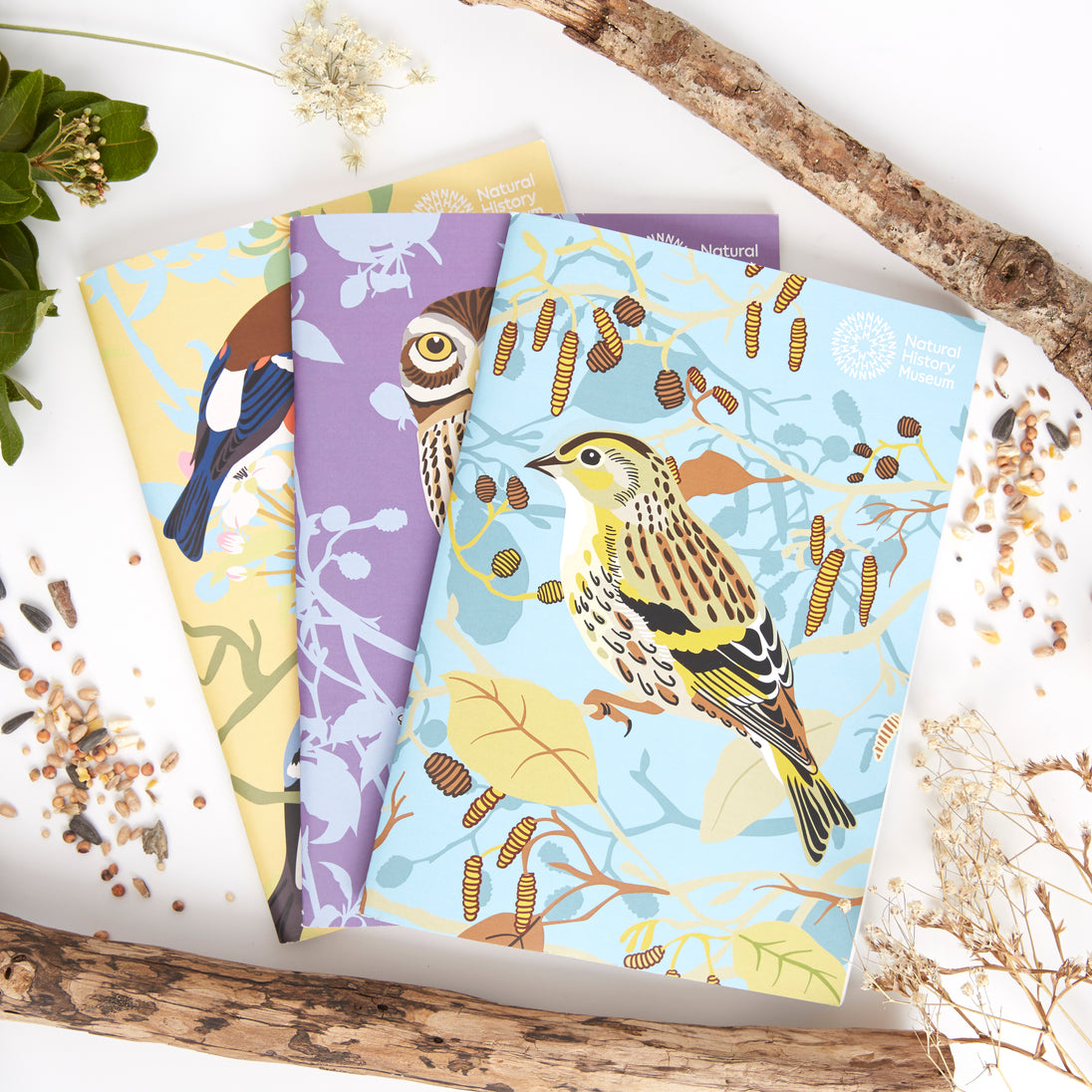NHM Natural History Museum A5 Sketchbooks, Pack of 3, British Birds, For Drawing, Sketching, Doodling, Writing And Scrapbook Designs, With Mixed Media, Pen, Ink, Painting And More, Art, Craft Supplies