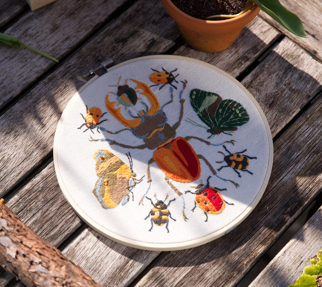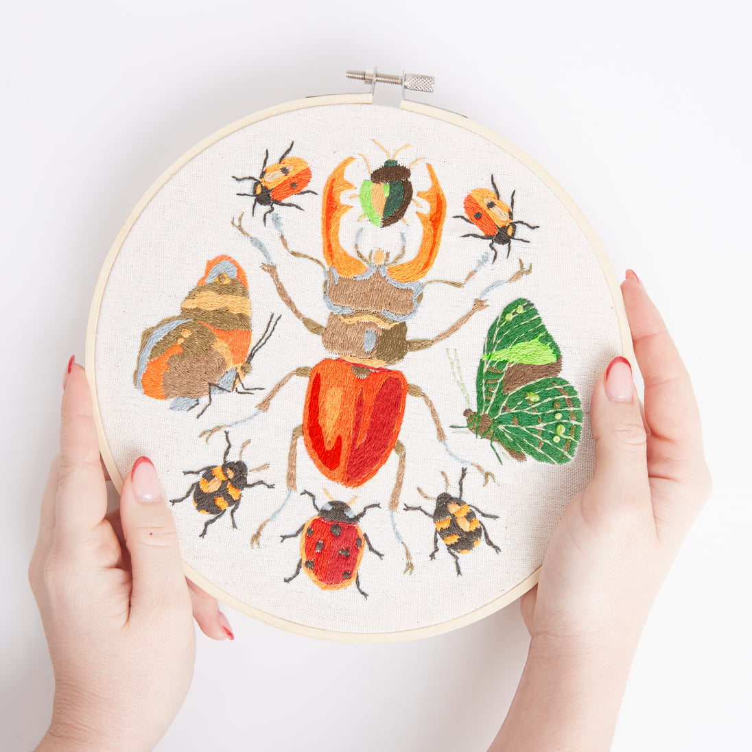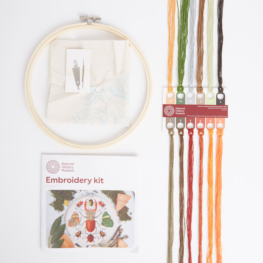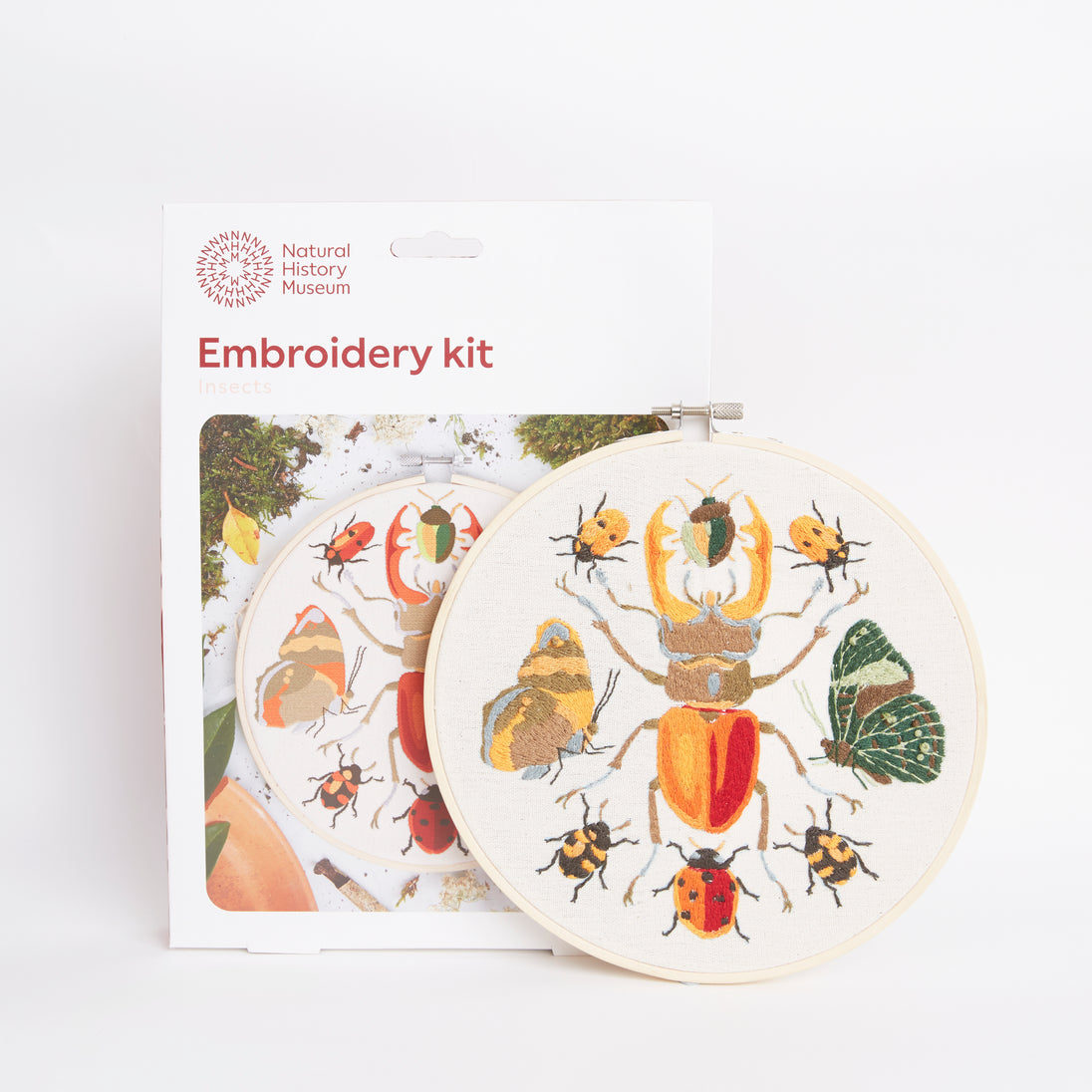 NHM Natural History Museum Embroidery Hoop Decoration Kit, Insects Design, 8", Embroidery Kits For Adults & Cross Stitch Kits for Adults Beginners, Gift Idea, With Embroidery Pattern