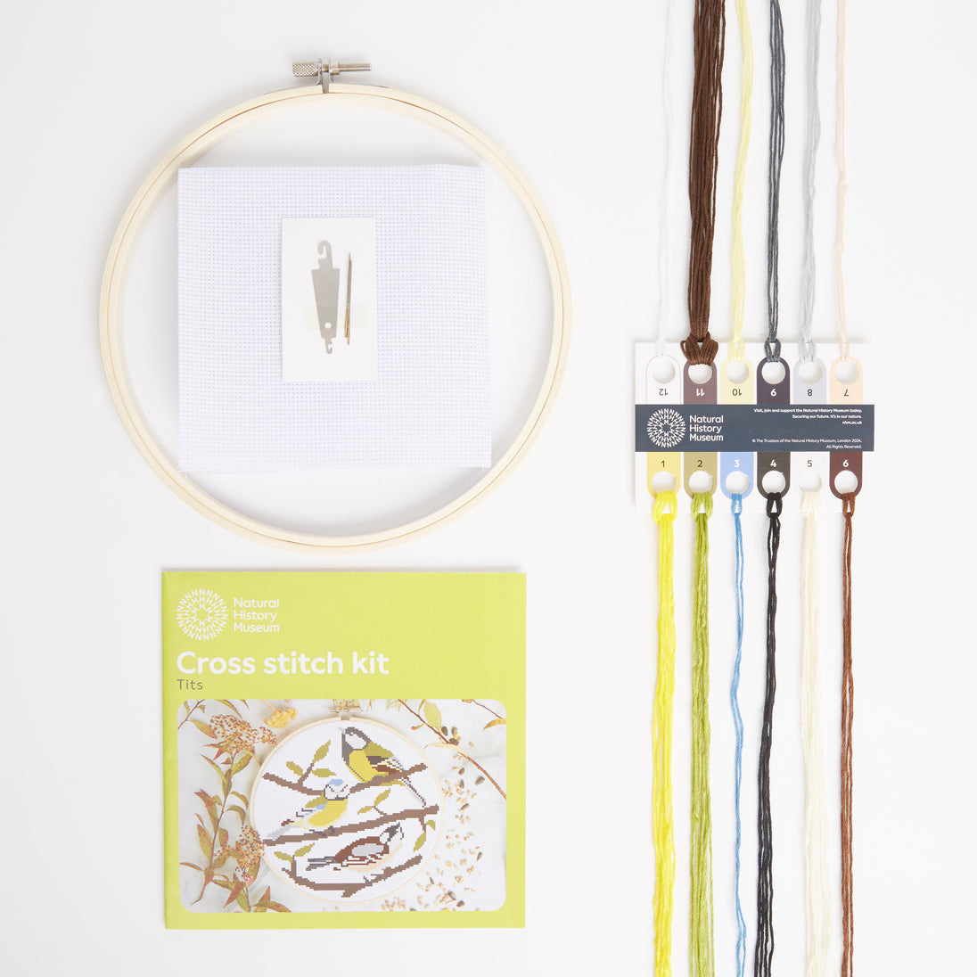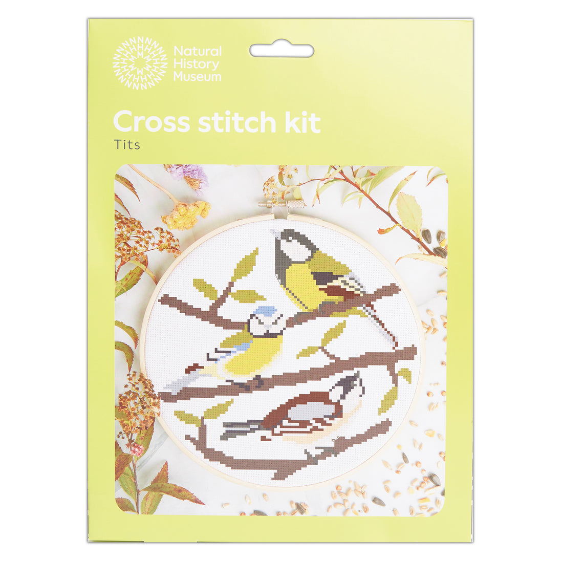 NHM Natural History Museum Cross Stitch Kit, Tits Design, 14cm Embroidery Kits For Adults, Cross Stitch Kits For Adults Beginners, Gift Idea, With Embroidery Patterns, Embroidery Set