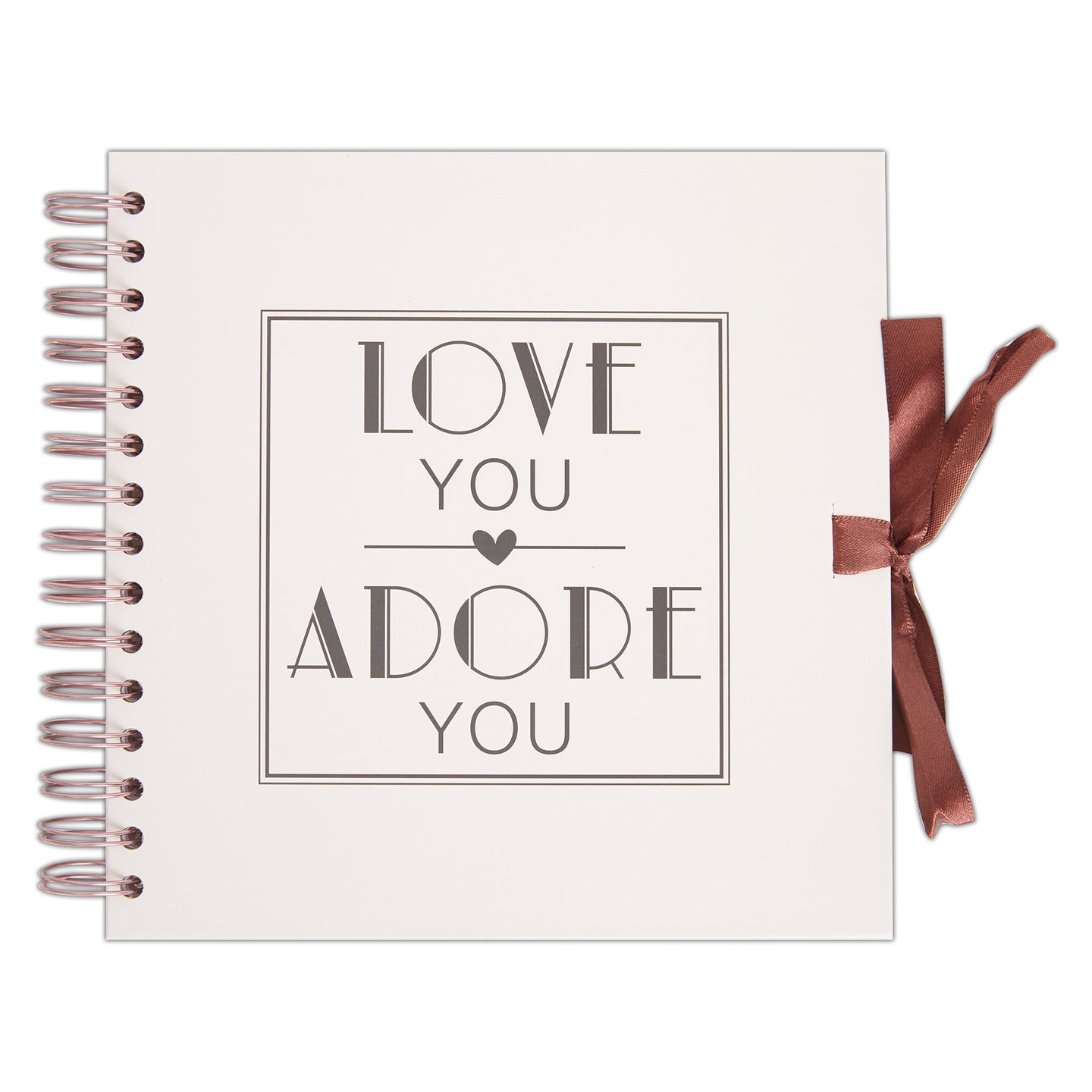 Papermania Wiro Bound Hardback Scrapbook, 40 Pages, White Paper,Love You , 8" x 8", Multicoloured, With Coordinating Ribbon Closure And Wire Colours