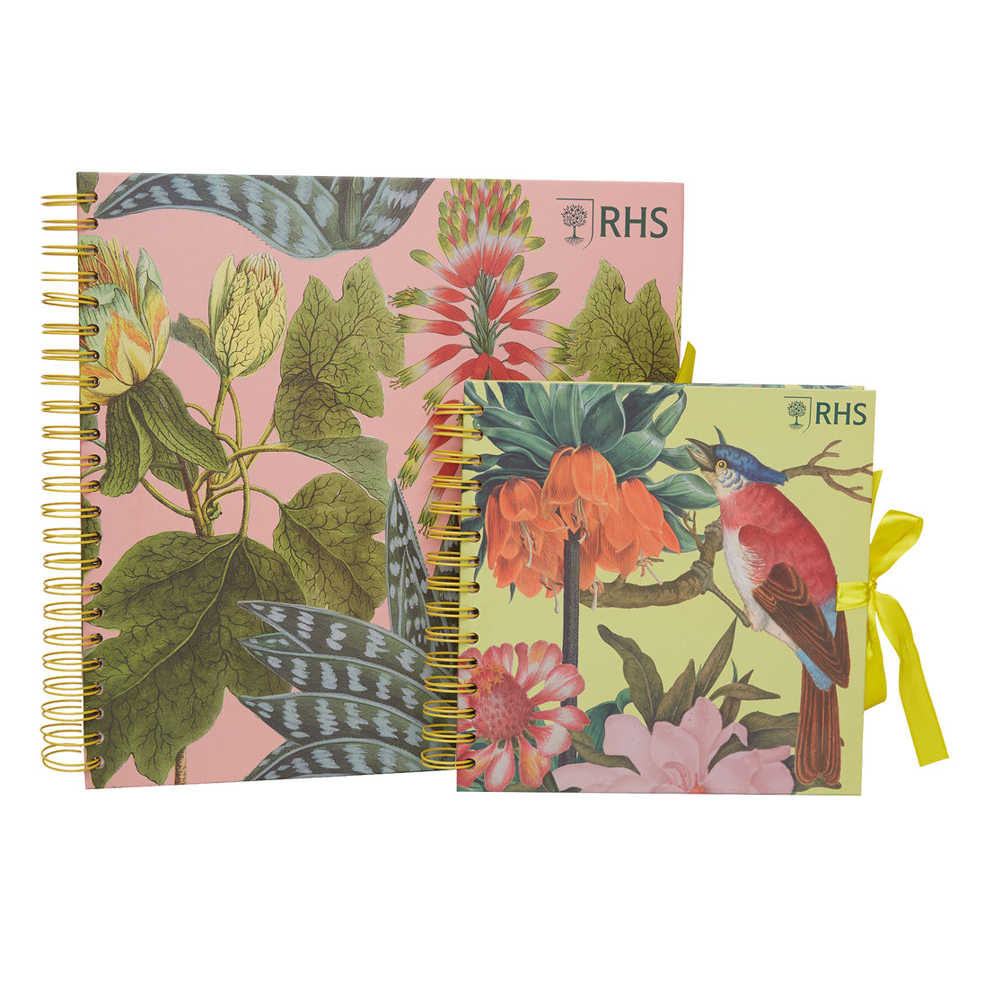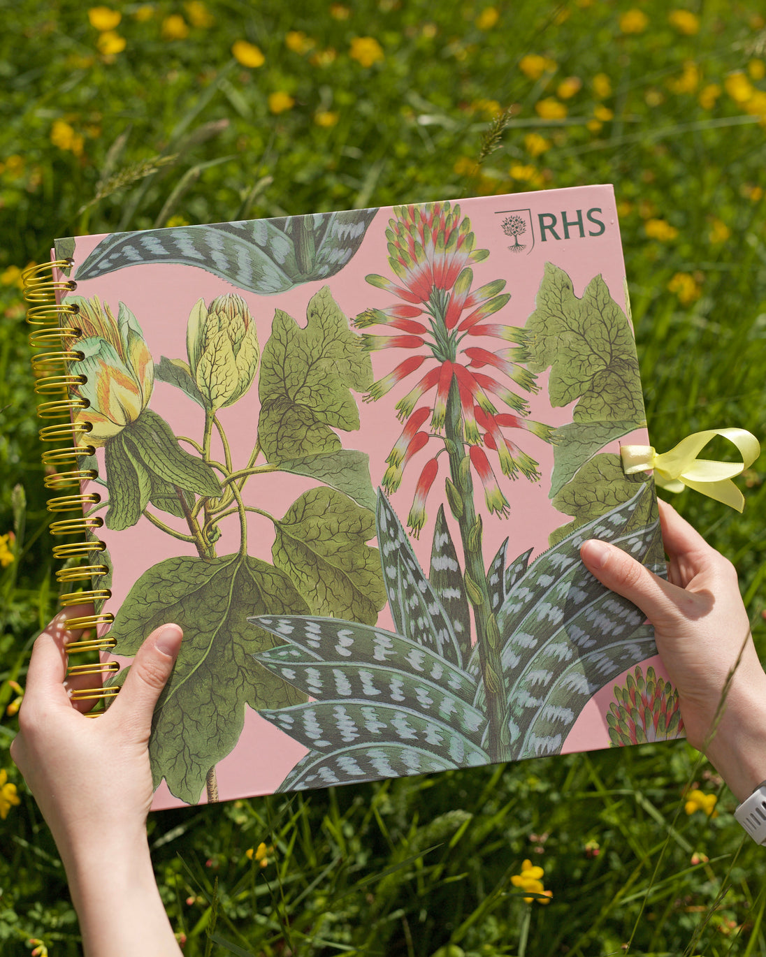 RHS The Royal Horticultural Society Wiro Bound Hardback Scrapbook, 40 Pages, White Paper, Succulents, 12" x 12", Multicoloured, With Coordinating Ribbon Closure And Wire Colours