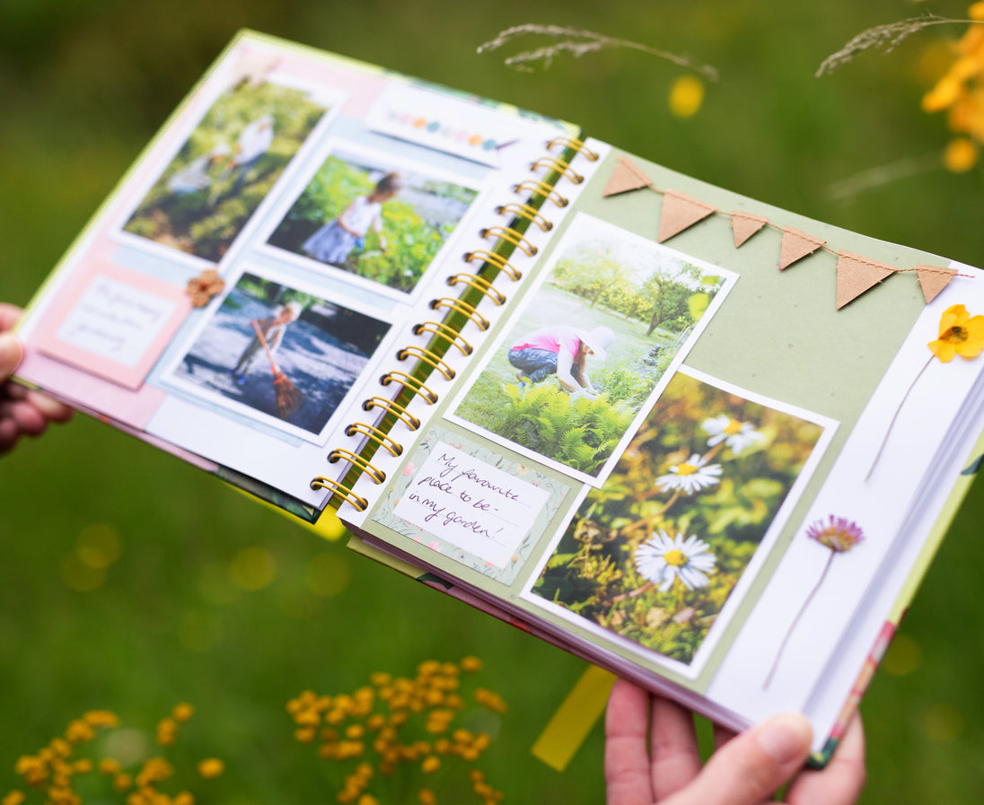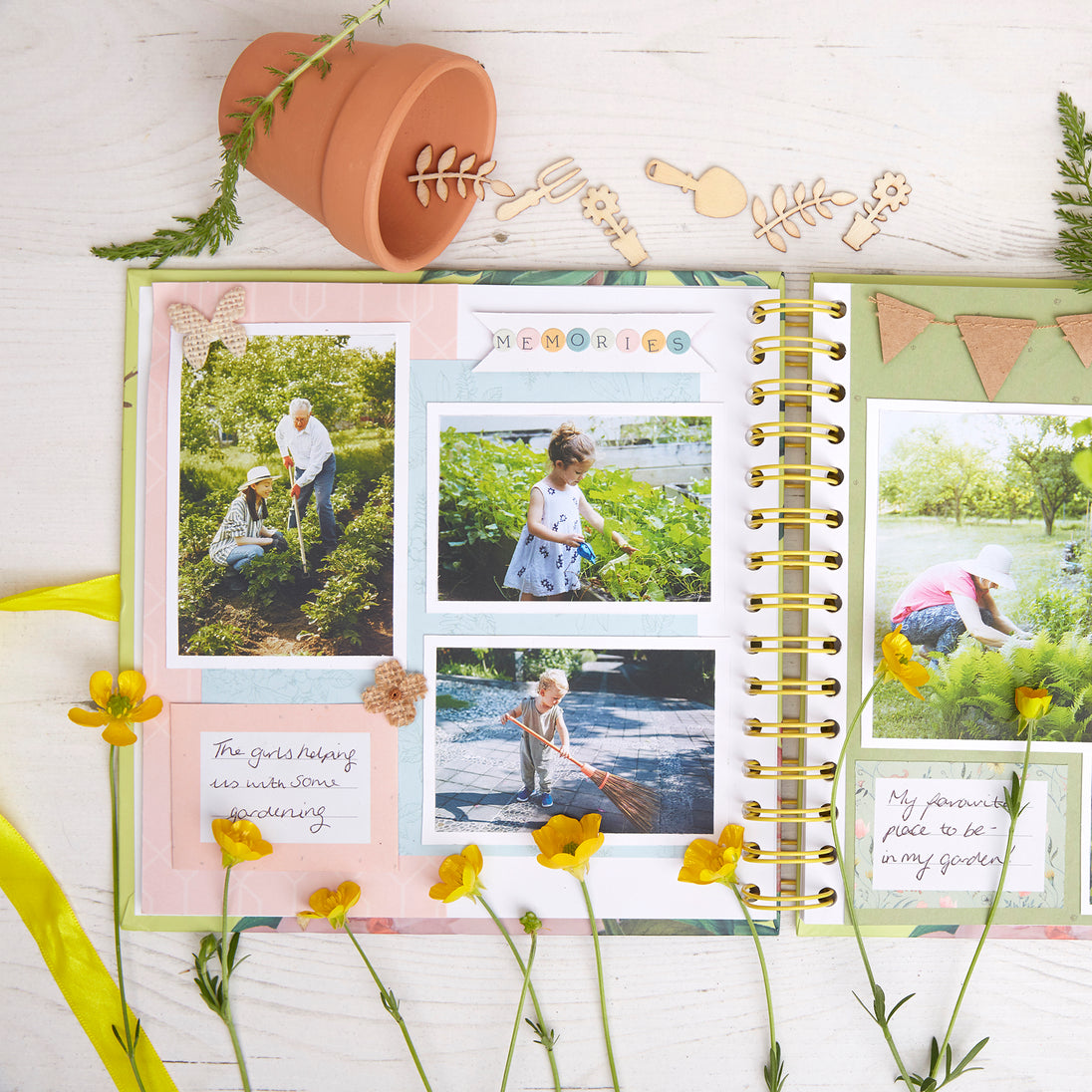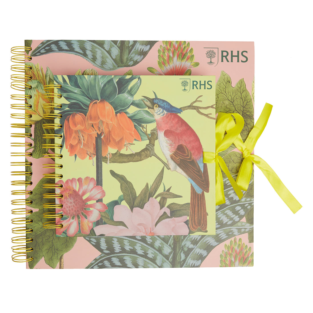 RHS The Royal Horticultural Society Wiro Bound Hardback Scrapbook, 40 Pages, White Paper, Tropical, 8" x 8", Multicoloured, With Coordinating Ribbon Closure And Wire Colours