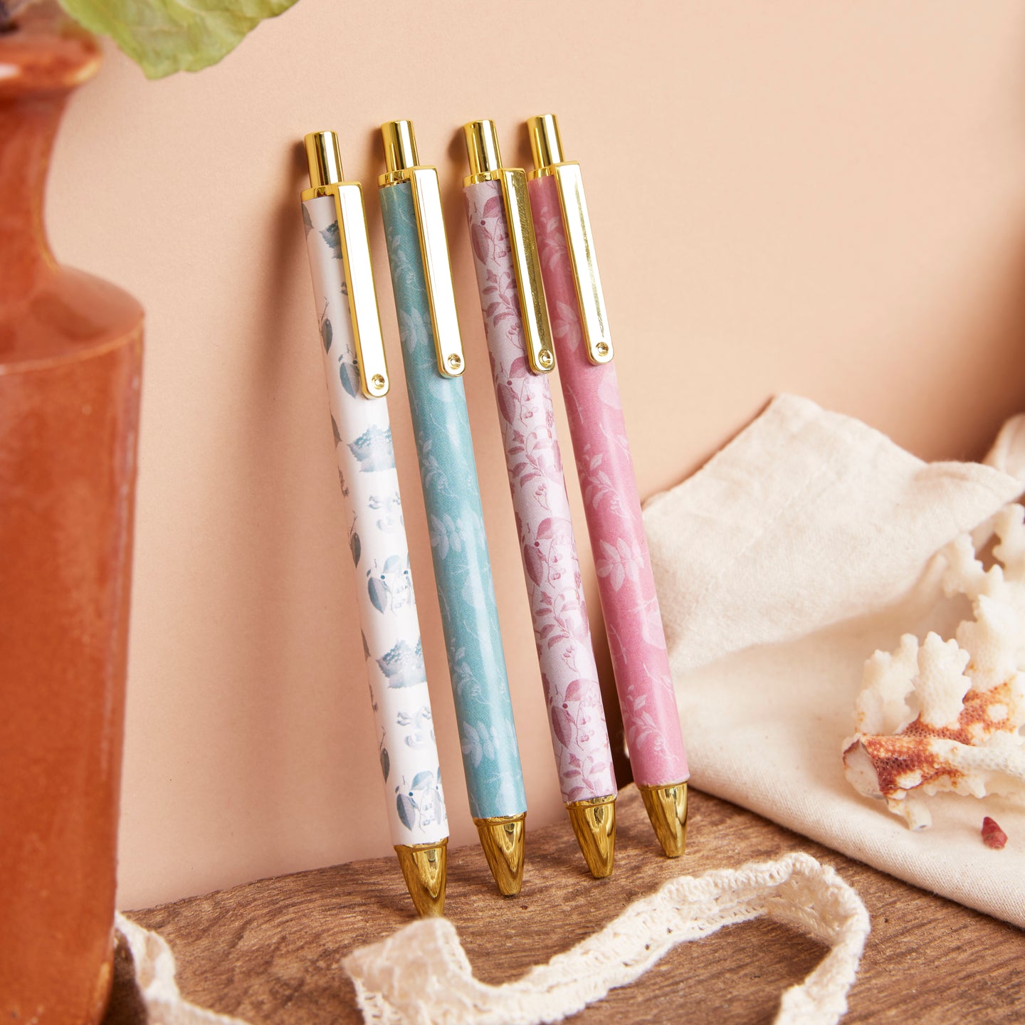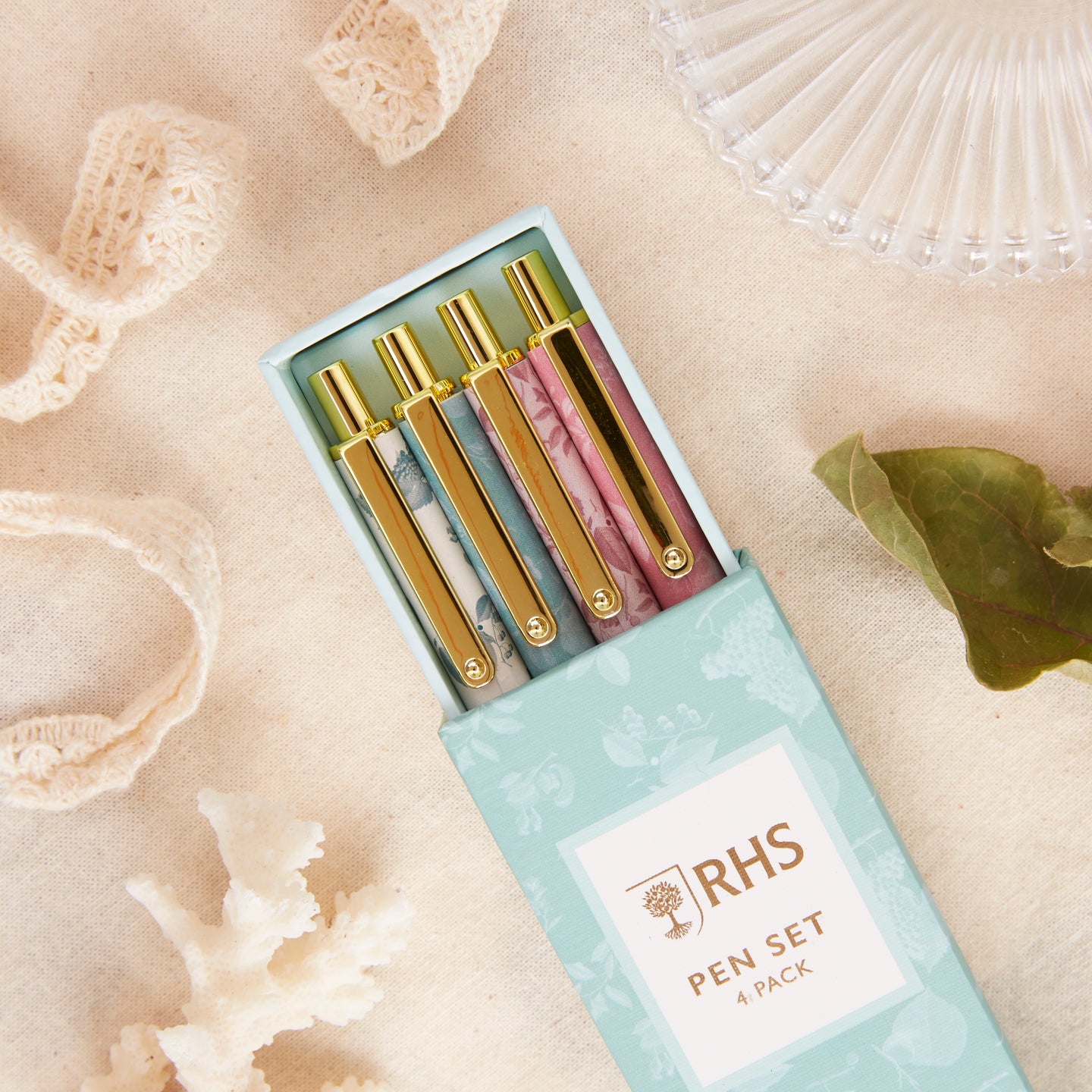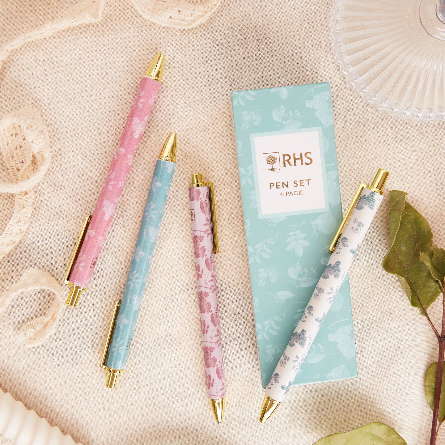 RHS The Royal Horticultural Society Ballpoint Pen Set, Chinoiserie, Pack Of 4, For Writing, Jotting, Notes, Ideas, Plans, Work, School, Office, Home Use, Perfect Gift Idea, Pastel Floral Design