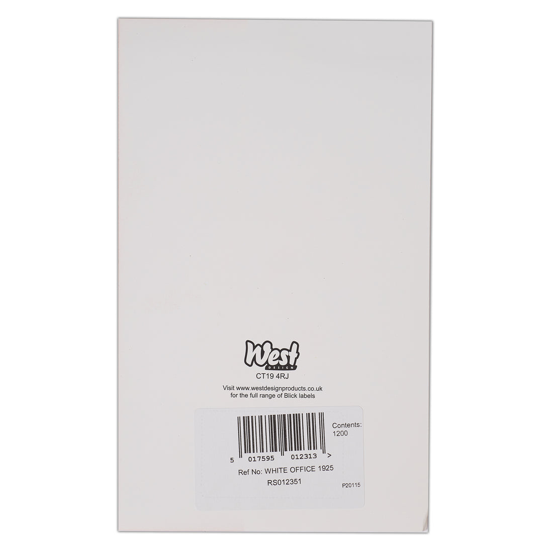 Blick Self Adhesive Stickers Office Pack, 19mm x 25mm, Rectangular, White, 1200 Labels